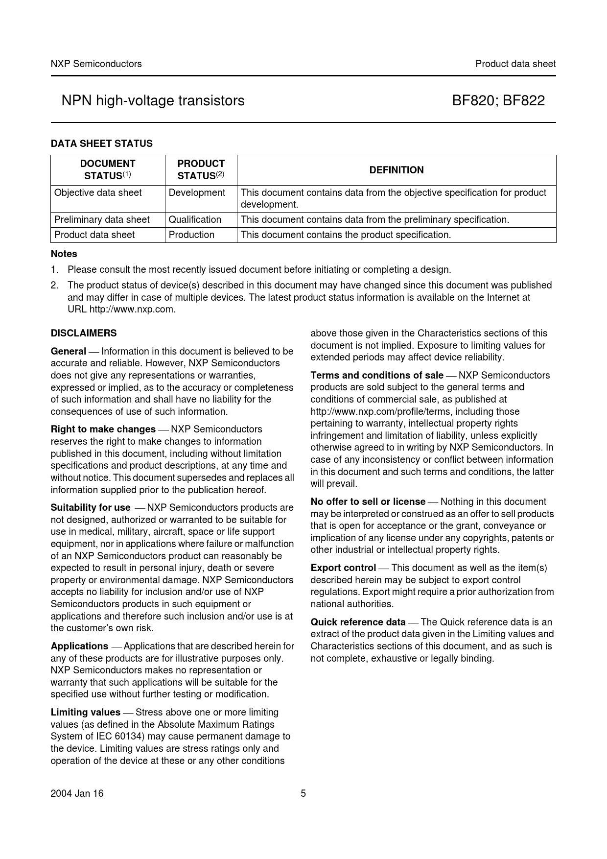 DATA SHEET STATUS. DOCUMENT. PRODUCT. DEFINITION. STATUS. Notes. DISCLAIMERS. General. Terms and conditions of sale