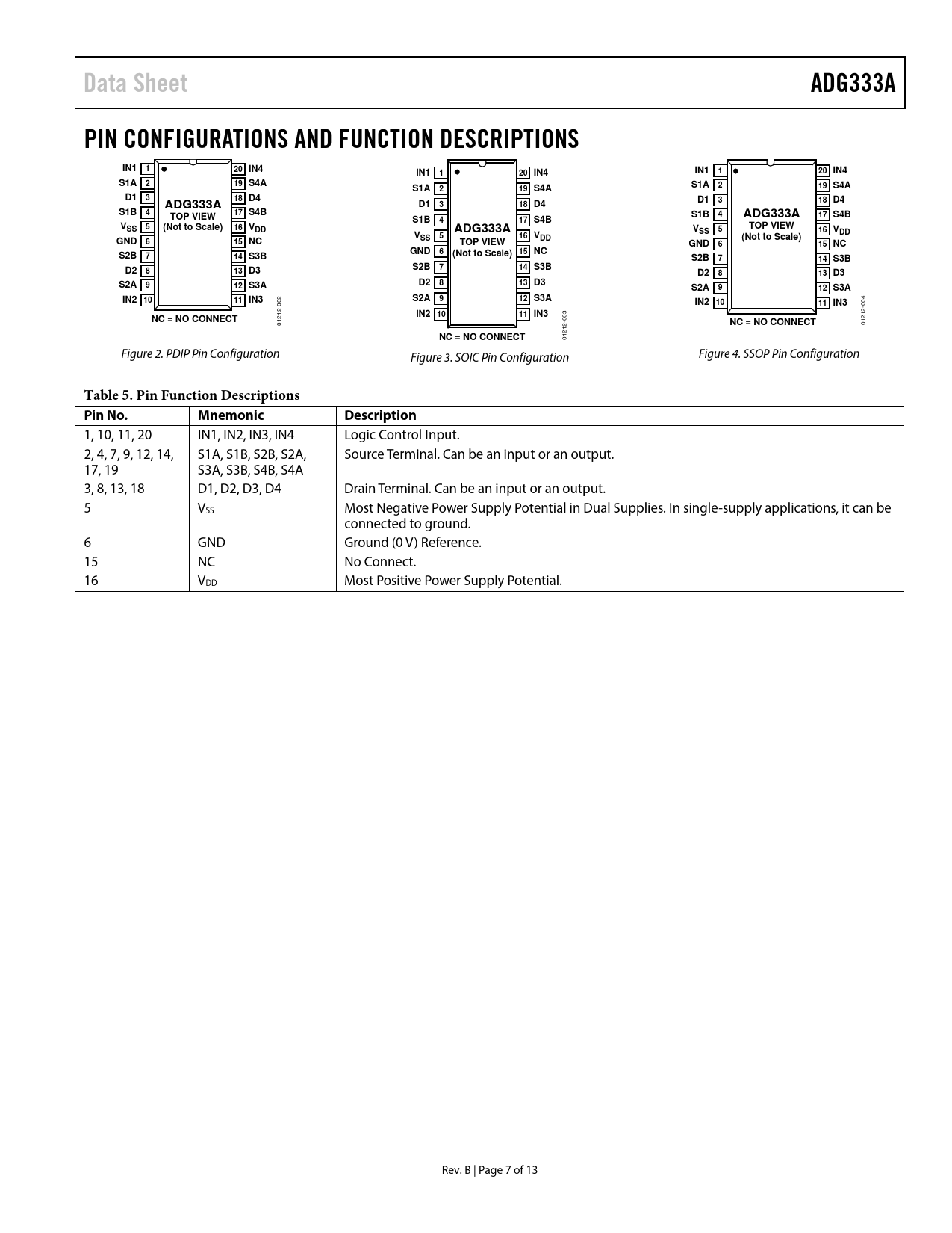 Pages / Page13 / 7 — Data Sheet. ADG333A. PIN CONFIGURATIONS AND FUNCTION DESCRIPTIONS. IN1. …