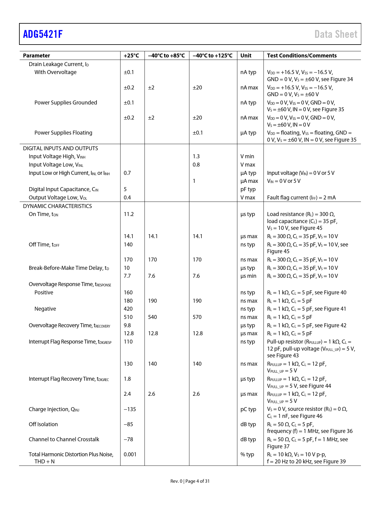 Pages / Page31 / 4 — ADG5421F. Data Sheet. Parameter. +25°C. −40°C to +85°C −40°C to +125°C …