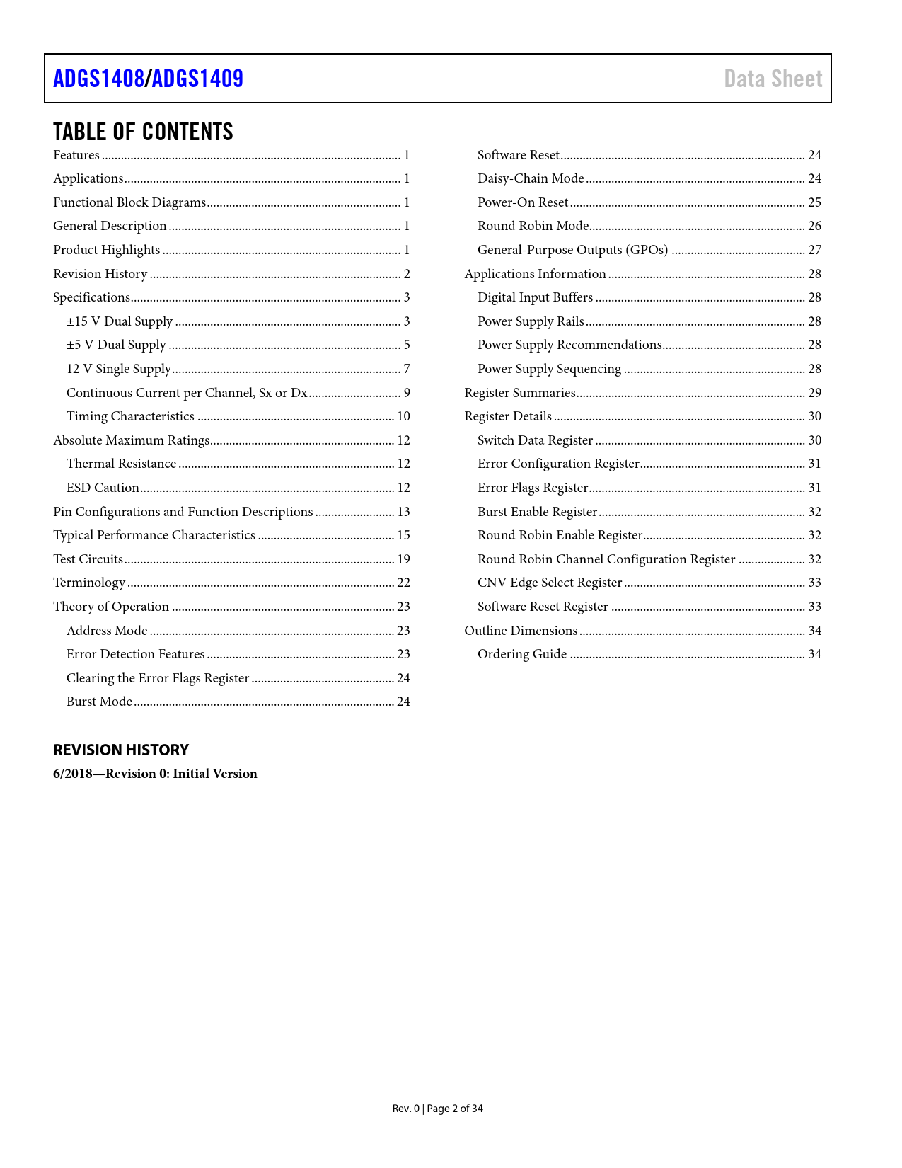 Pages / Page34 / 2 — ADGS1408/. ADGS1409. Data Sheet. TABLE OF CONTENTS. REVISION HISTORY. …