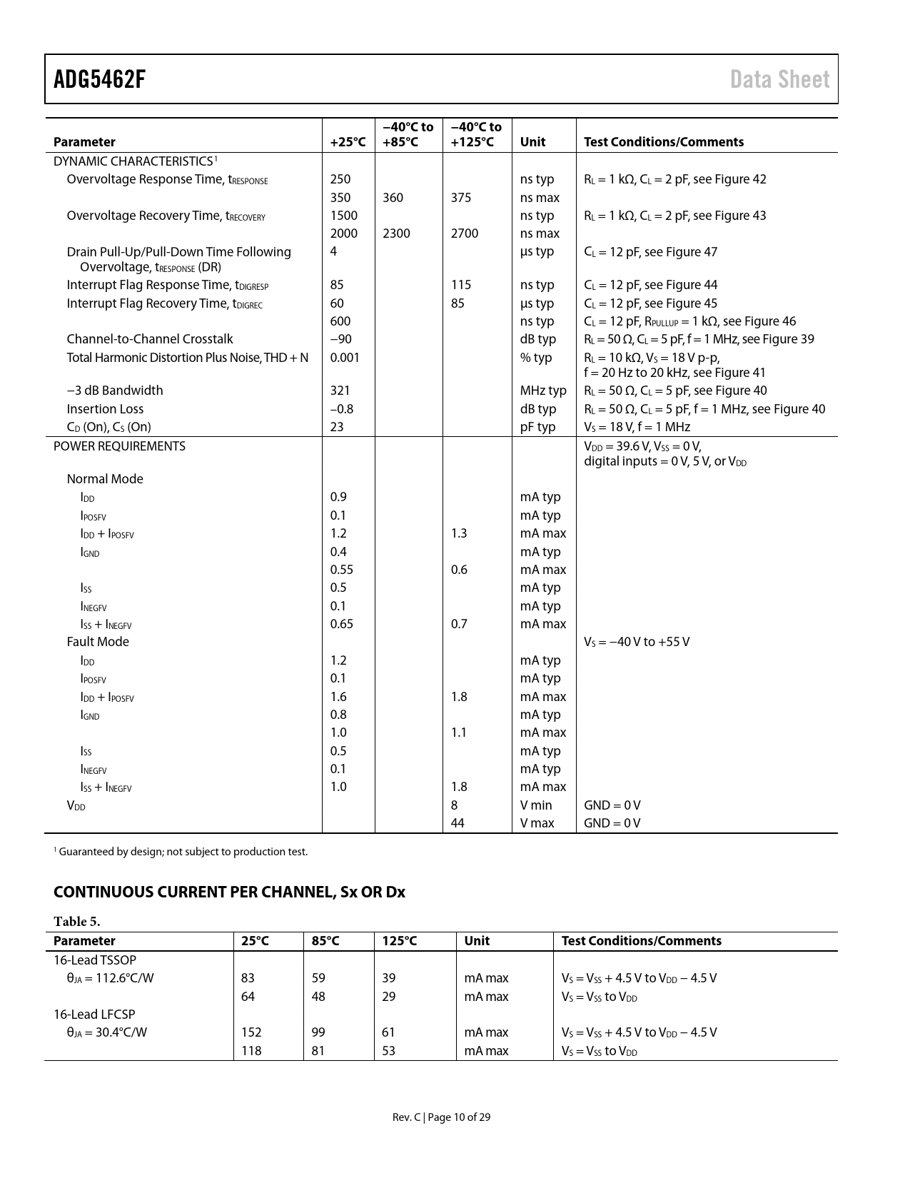 Pages / Page29 / 10 — ADG5462F. Data Sheet. −40°C to −40°C to. Parameter. +25°C +85°C. +125°C. …