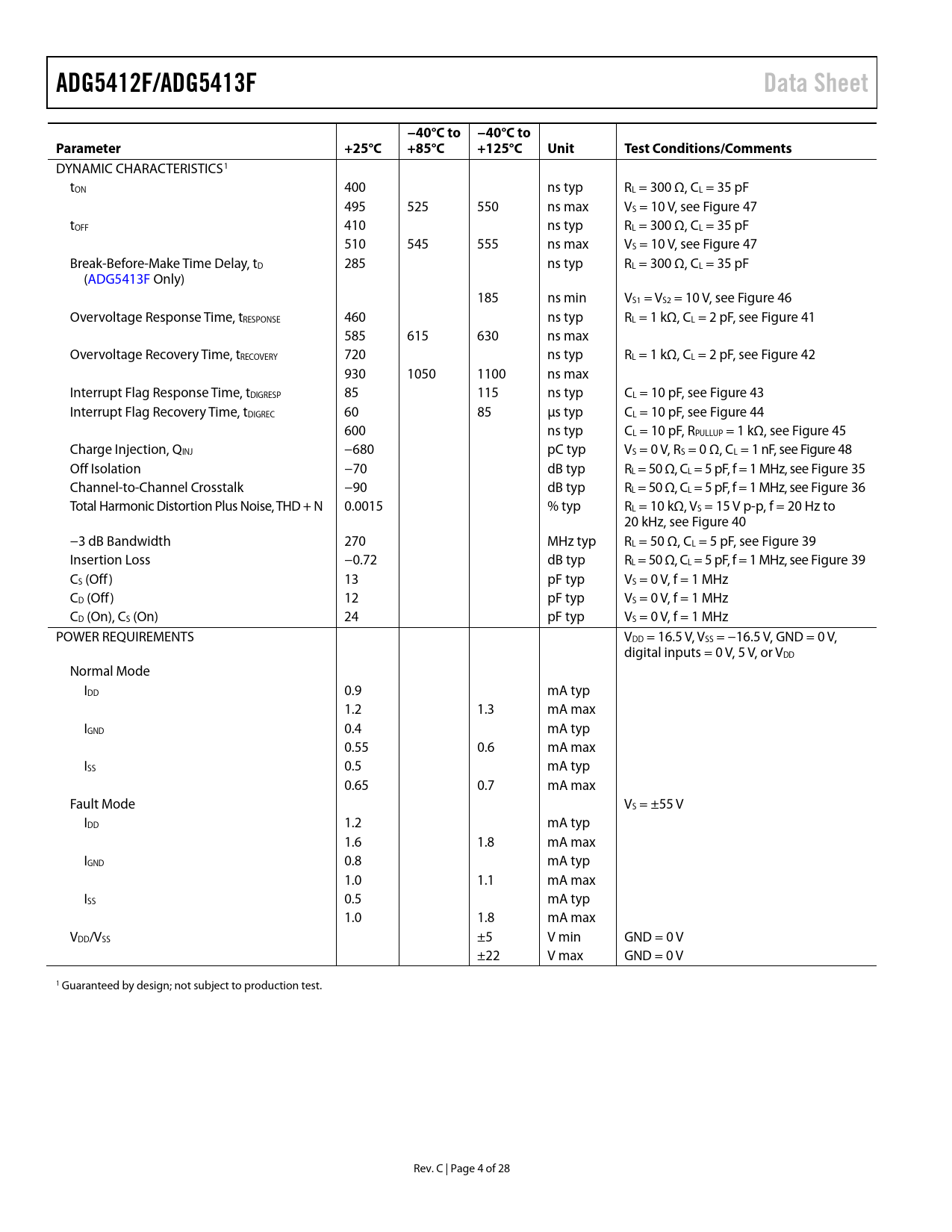 Pages / Page28 / 4 — ADG5412F/ADG5413F. Data Sheet. −40°C to −40°C to. Parameter. +25°C. …
