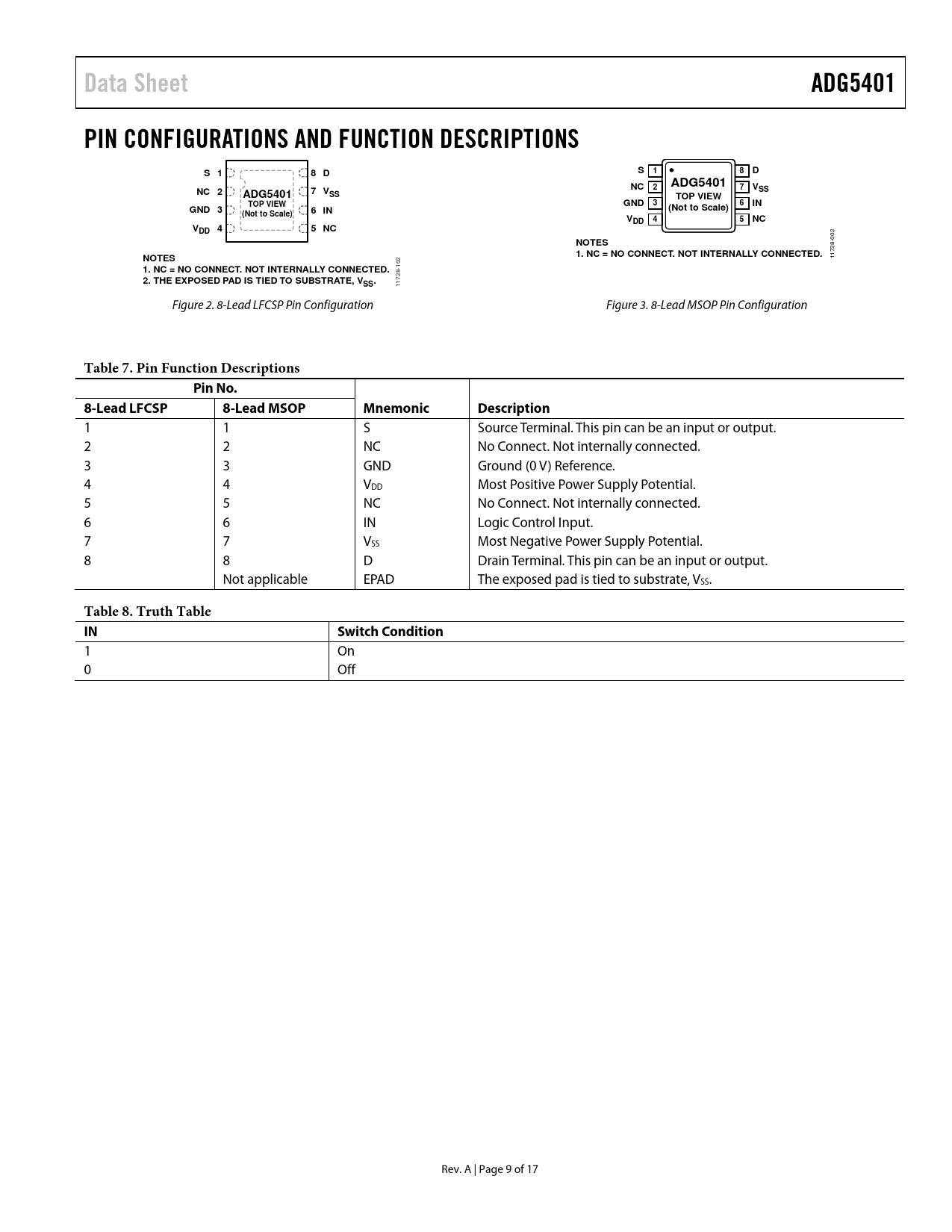 Pages / Page17 / 9 — Data Sheet. ADG5401. PIN CONFIGURATIONS AND FUNCTION DESCRIPTIONS. S 1. 8 …