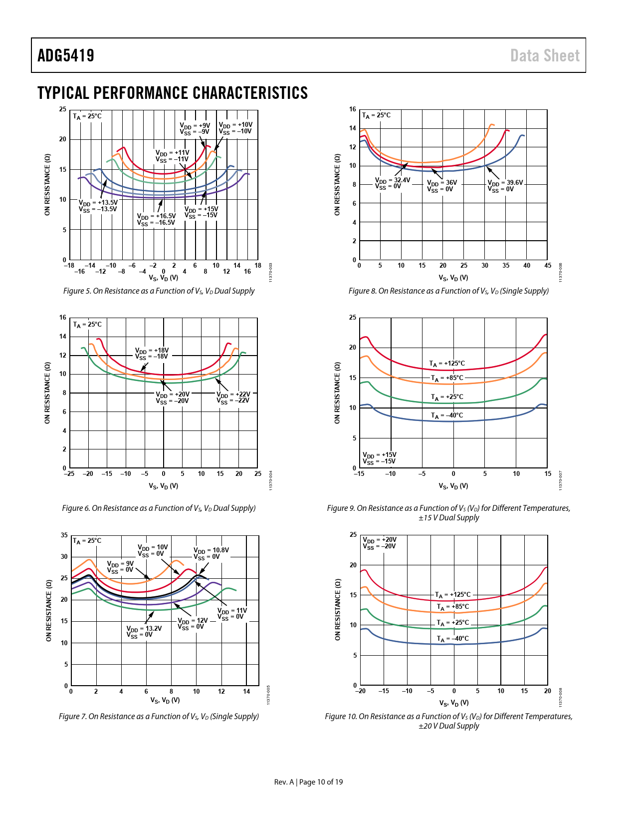 | Pages / Page | 19 / 10 — ADG5419. Data Sheet. TYPICAL PERFORMANCE CHARACTERISTICS. A = 25°C. VDD = … |