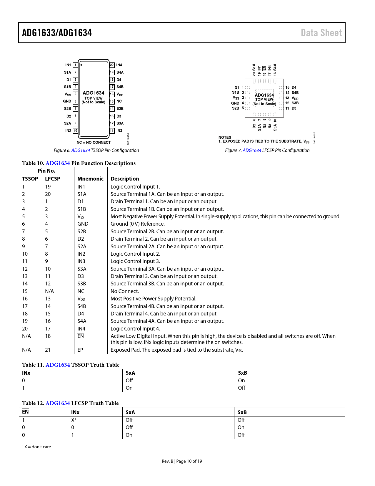 Table 10. ADG1634 P in Function Descriptions Pin No. TSSOP LFCSP Mnemonic Description