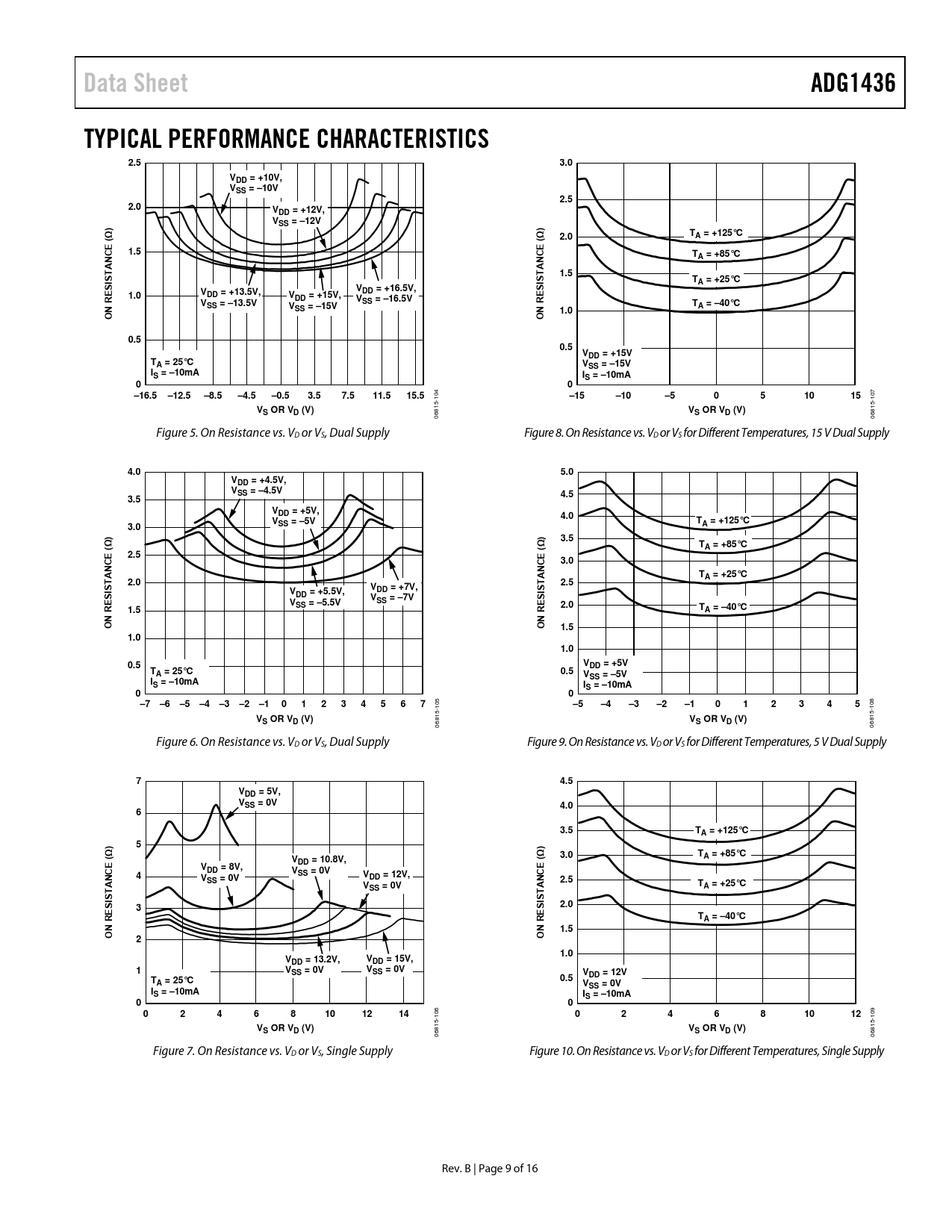 Data Sheet. ADG1436. TYPICAL PERFORMANCE CHARACTERISTICS. 2.5. 3.0. VDD = +10V, VSS = –10V. 2.0. VDD = +12V, V. SS = –12V. A = +125°C. 1.5