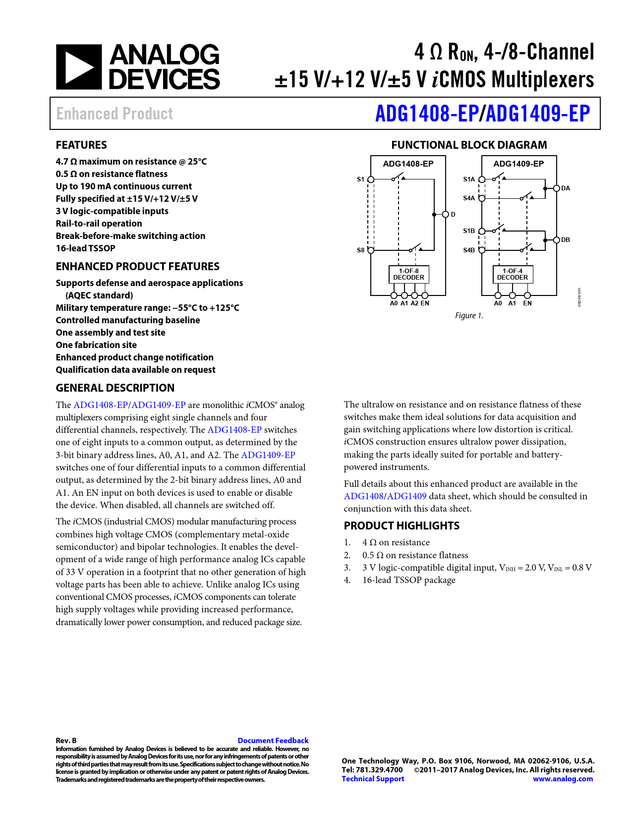 Datasheet ADG1408-EP, ADG1409-EP (Analog Devices)