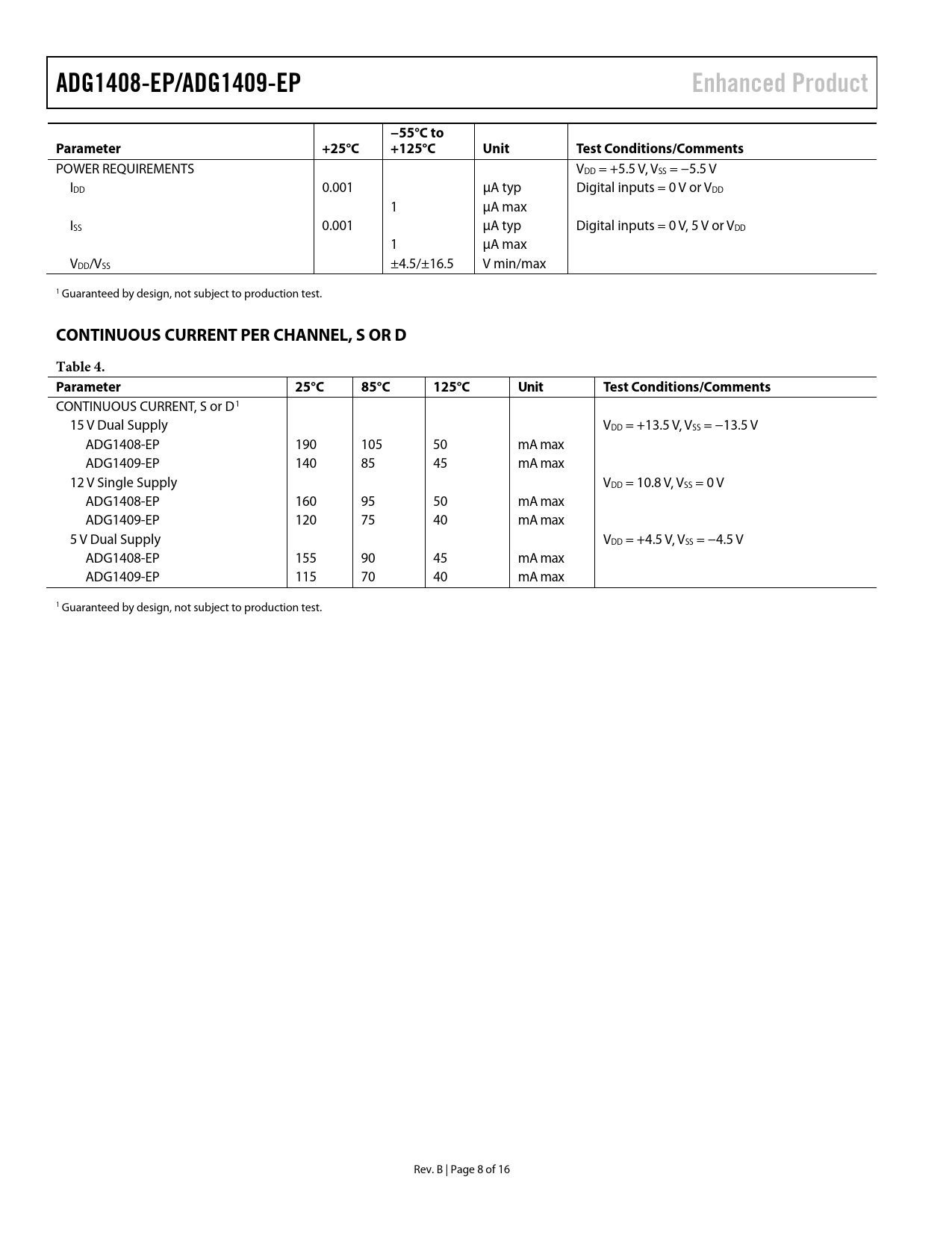 Pages / Page16 / 8 — ADG1408-EP/ADG1409-EP. Enhanced Product. −55°C to. Parameter. +25°C. …