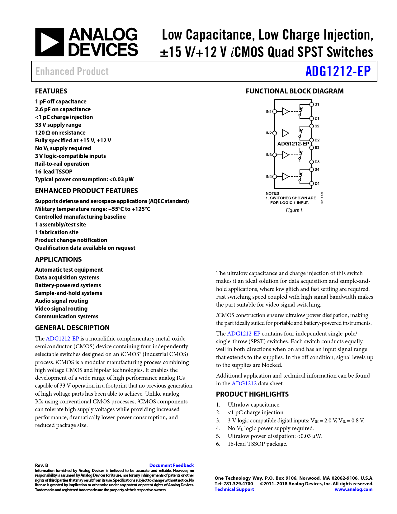 Datasheet ADG1212-EP (Analog Devices)