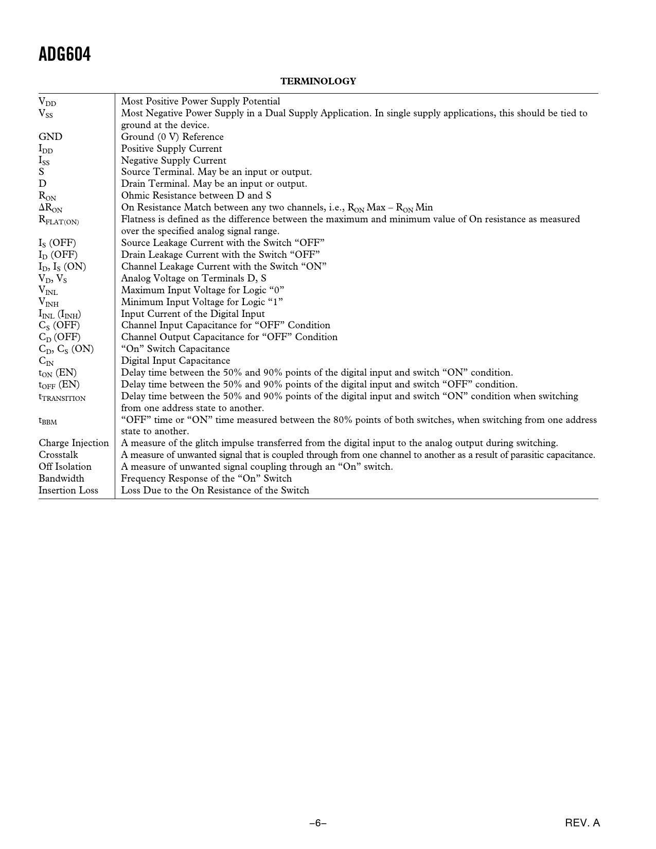 Pages / Page11 / 6 — ADG604. TERMINOLOGY