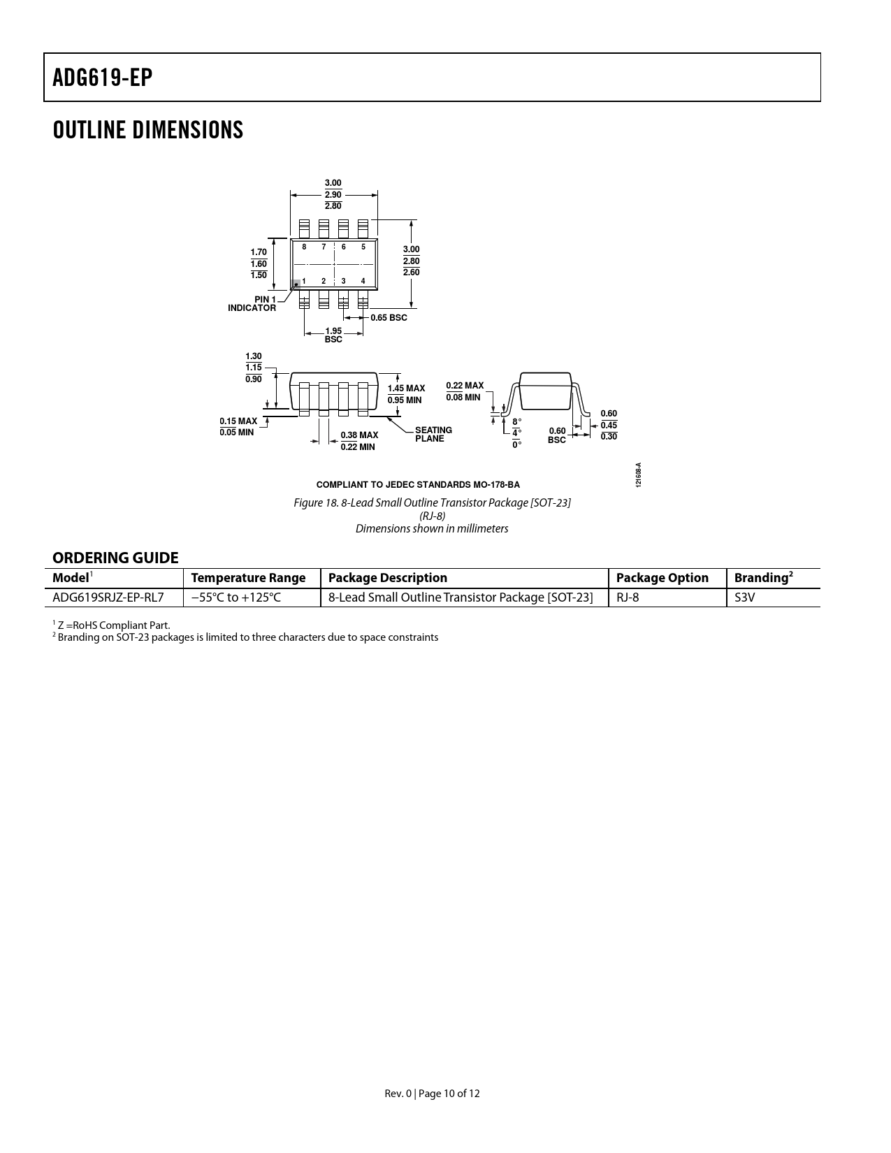 Pages / Page12 / 10 — ADG619-EP. OUTLINE DIMENSIONS. 3.00 2.90 2.80. 3.00. 1.70. 2.80. 1.60. …