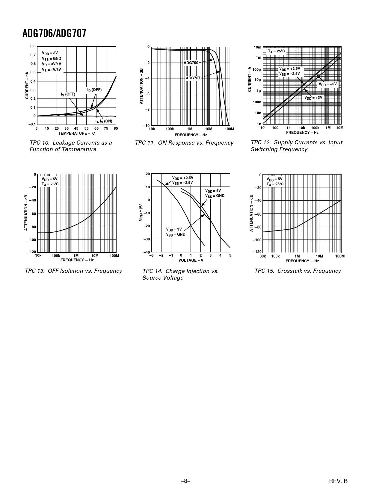 TPC 13. OFF Isolation vs. Frequency TPC 14. Charge Injection vs. TPC 15. Crosstalk vs. Frequency Source Voltage –8– REV. B
