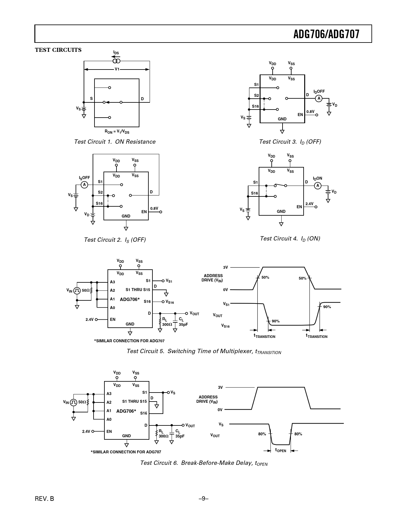 Test Circuit 6. Break-Before-Make Delay, tOPEN REV. B –9–