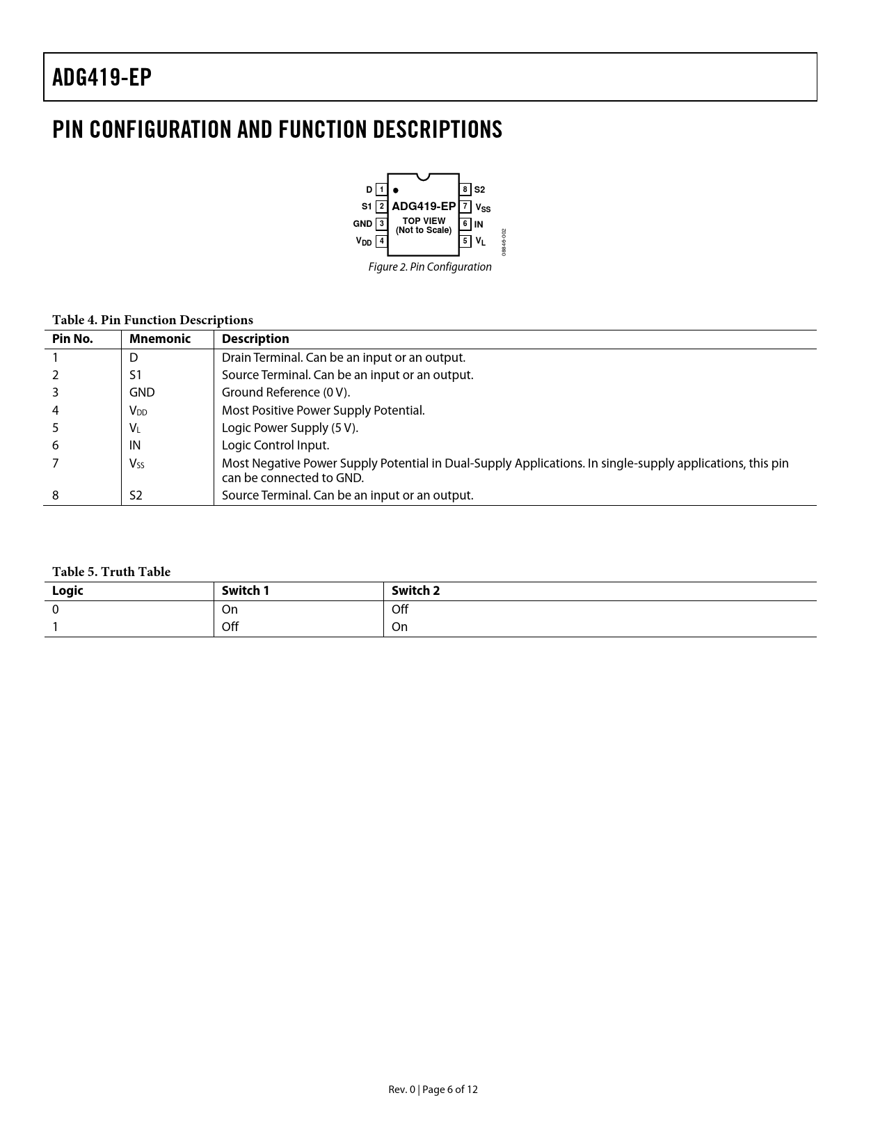 Pages / Page12 / 6 — ADG419-EP. PIN CONFIGURATION AND FUNCTION DESCRIPTIONS. D 1. S1 2 …
