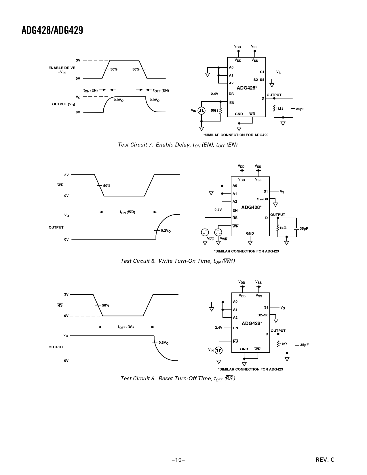 ADG428/ADG429 VDD VSS ENABLE DRIVE 50% S2–S8 ADG428* tON (EN) tOFF (EN) 2.4V OUTPUT 0.9V OUTPUT (VO) 35pF VIN GND