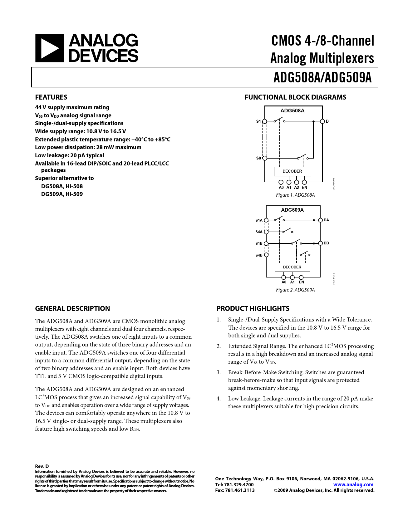 Datasheet ADG508A, ADG509A (Analog Devices)