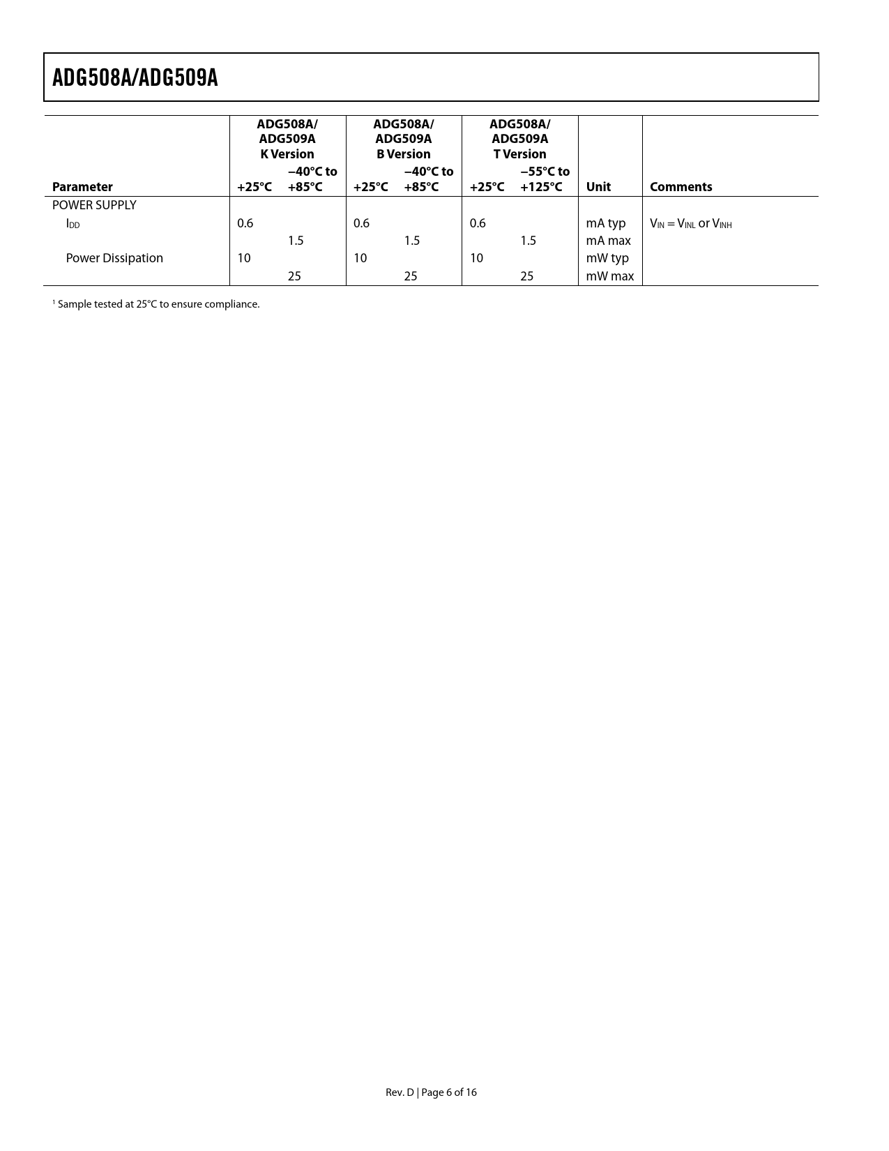 Pages / Page16 / 6 — ADG508A/ADG509A. ADG508A/. ADG509A. K Version. B Version. T Version. …
