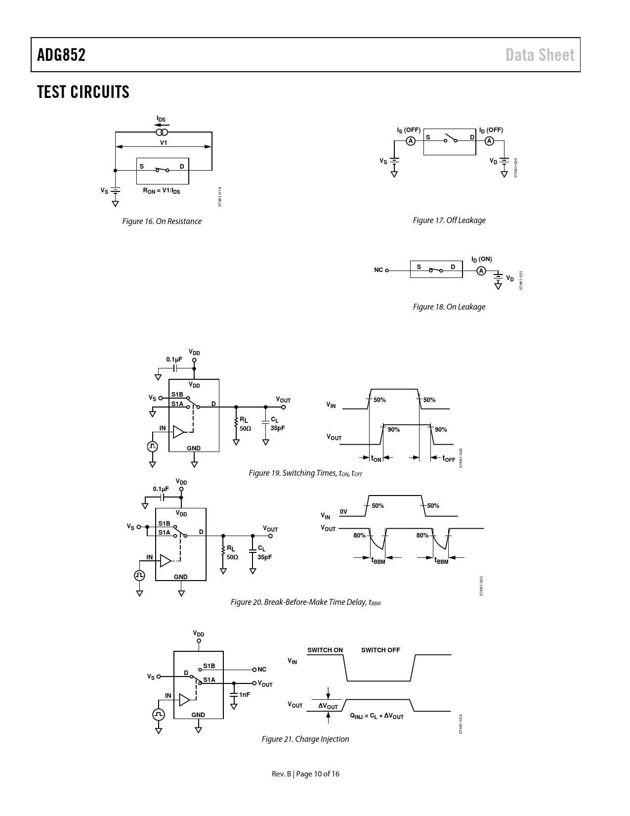 16 /10 — ADG852. Data Sheet. TEST CIRCUITS. IDS. IS (OFF). ID (OFF). RON = V1/IDS. …