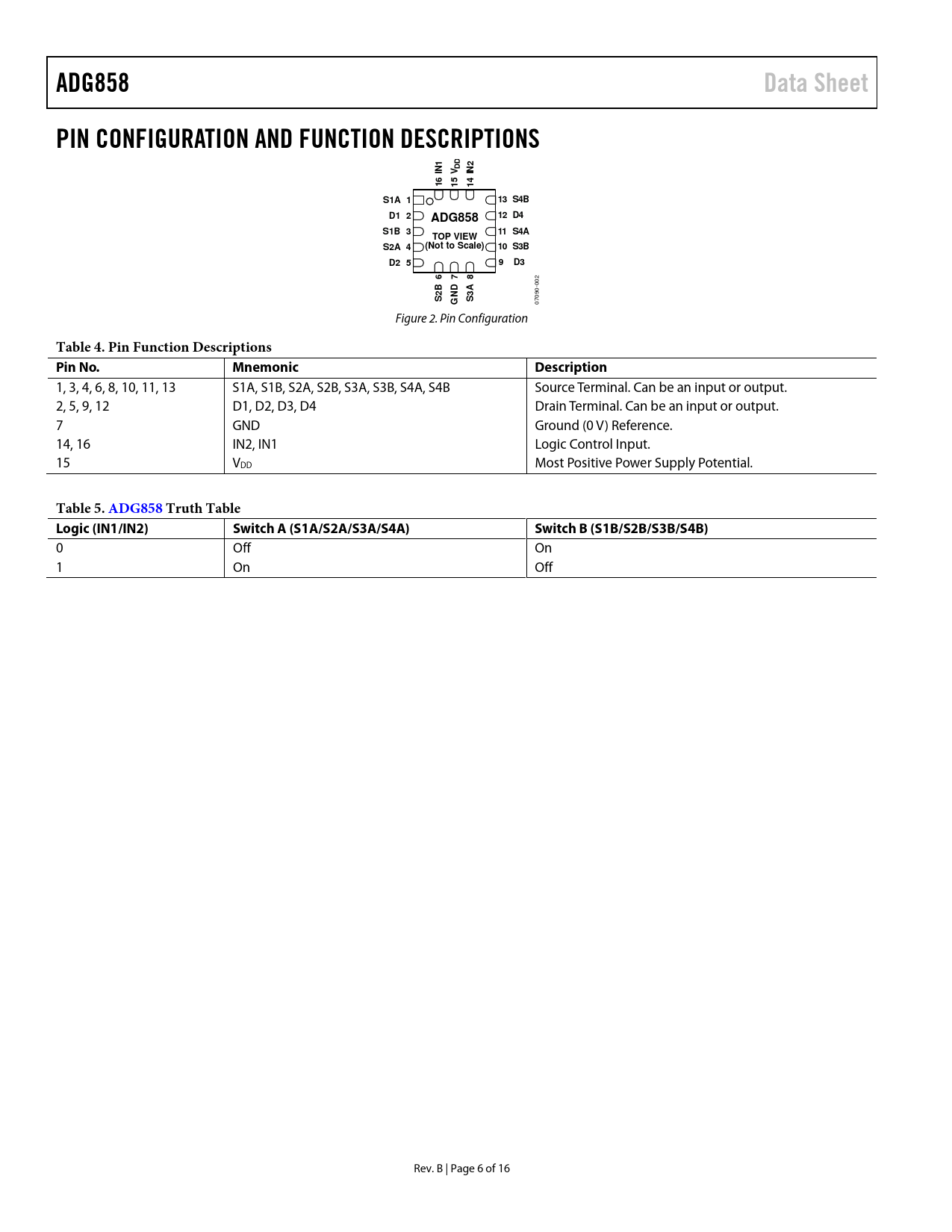 Pages / Page16 / 6 — ADG858. Data Sheet. PIN CONFIGURATION AND FUNCTION DESCRIPTIONS. S1A 1. …