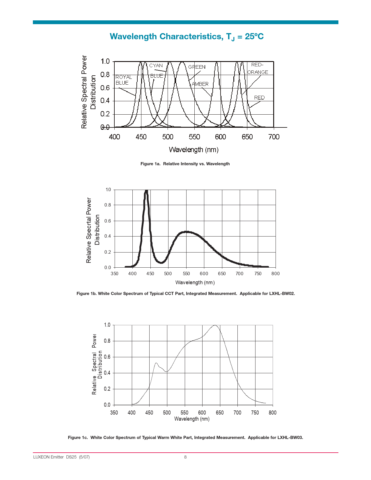 Wavelength Characteristics, TJ = 25ºC. Figure 1a. Relative Intensity vs. Wavelength