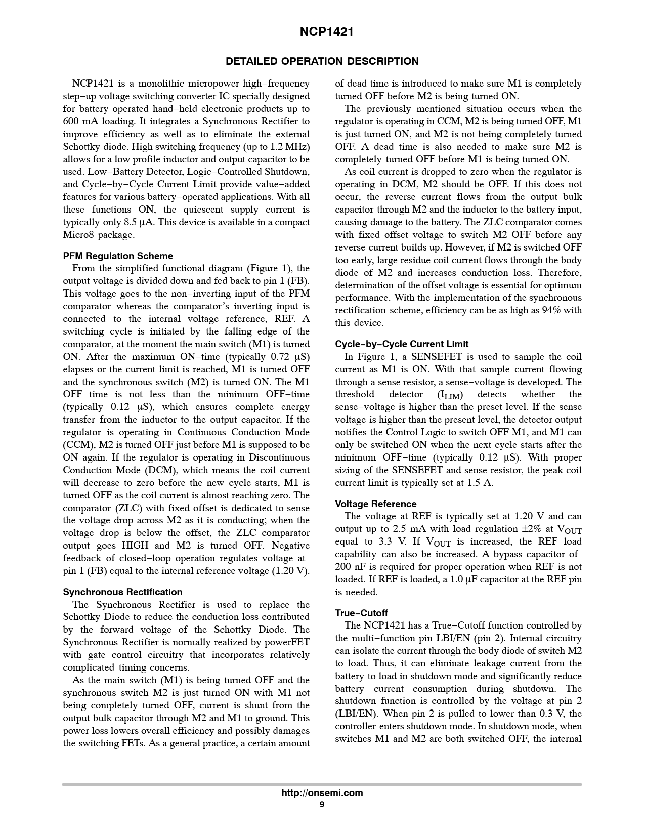 NCP1421 DETAILED OPERATION DESCRIPTION PFM Regulation Scheme Cycle−by−Cycle Current Limit Voltage Reference