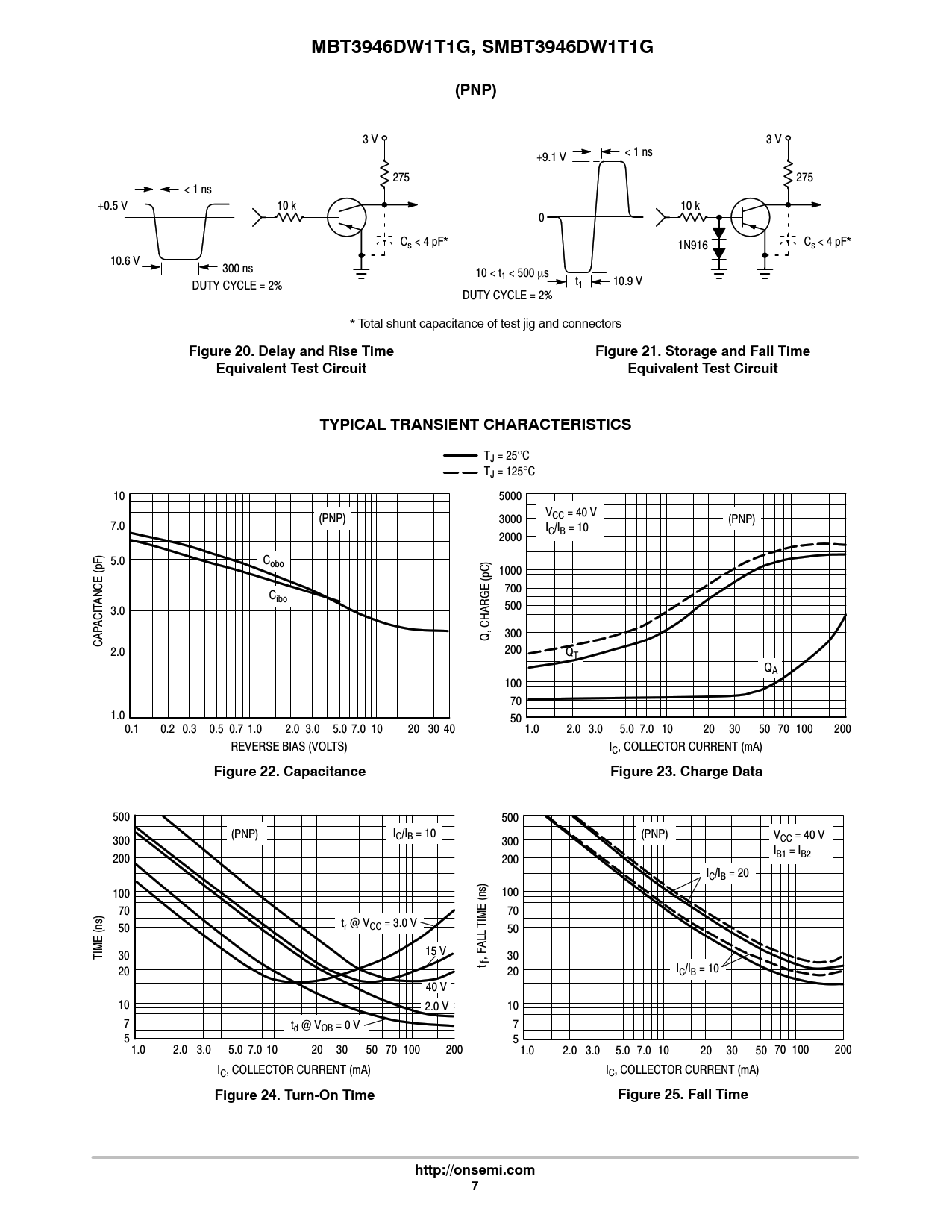 MBT3946DW1T1G, SMBT3946DW1T1G. (PNP). Figure 20. Delay and Rise Time. Figure 21. Storage and Fall Time. Equivalent Test Circuit