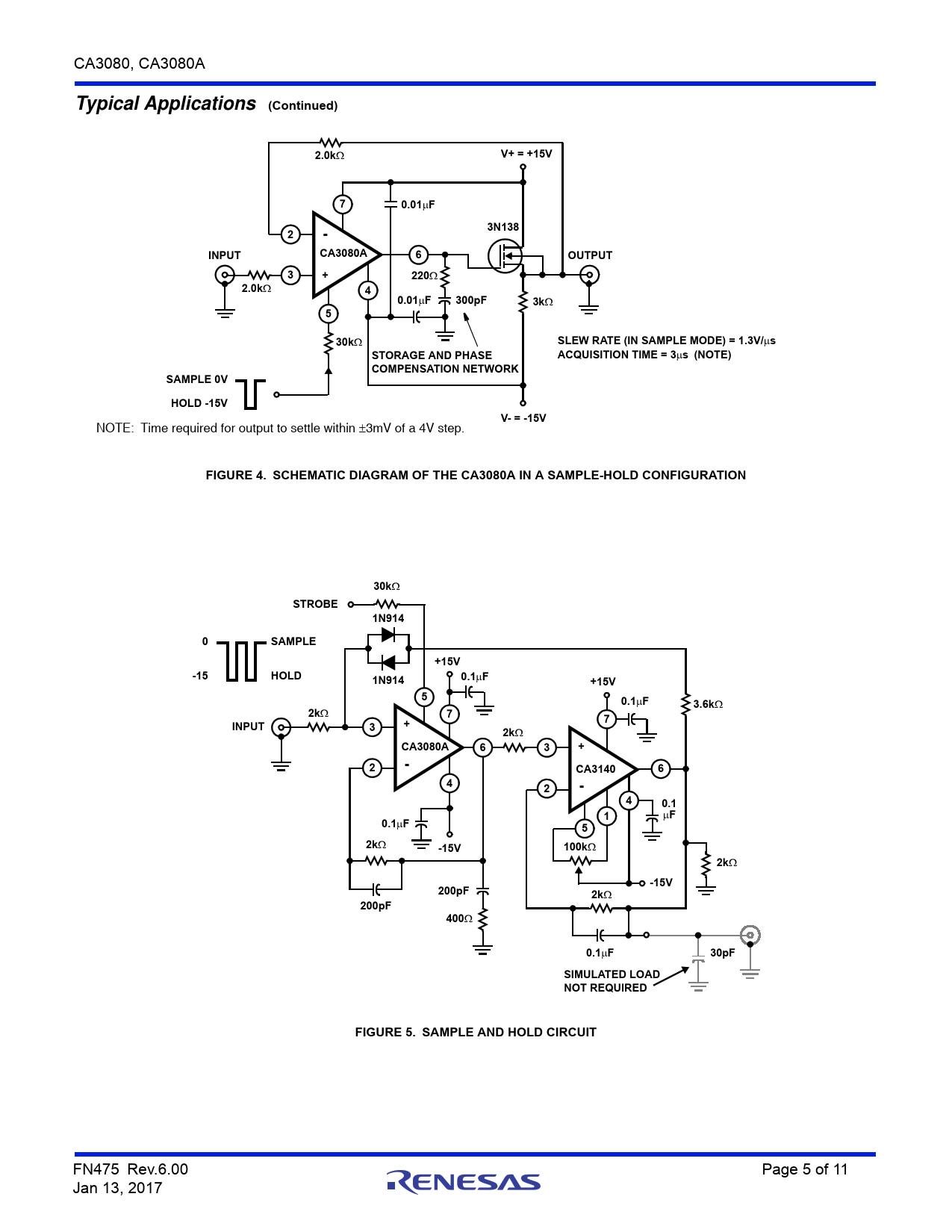 Typical Applications (Continued) 2.0k V+ = +15V 0.01 3N138 INPUT CA3080A OUTPUT 220 300pF 30k SLEW RATE (IN SAMPLE MODE) = 1.3V/