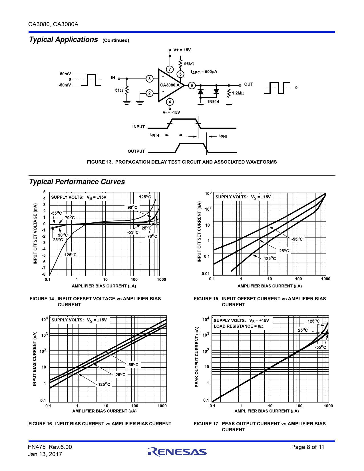 Typical Applications. (Continued). V+ = 15V. 56k. 50mV. ABC = 500. -50mV. CA3080,A. OUT. 1.2M. 1N914. V- = -15V. INPUT. tPLH. tPHL. OUTPUT