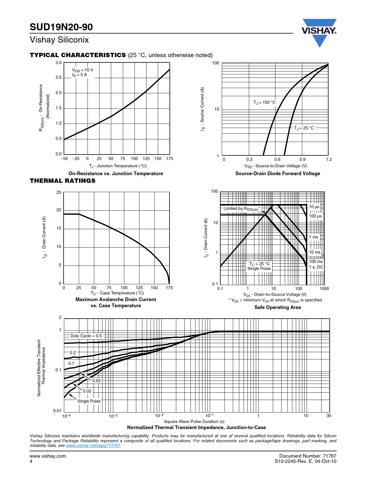 Vishay Siliconix maintains worldwide manufacturing capability. Products may be manufactured at one of several qualified locations. Reliability data for Silicon Technology and Package Reliability represent a composite of all qualified locations. For related documents such as package/tape drawings, part marking, and reliability data, see www.vishay.com/ppg?71767. www.vishay.com Document Number: 71767 4 S10-2245-Rev. E, 04-Oct-10