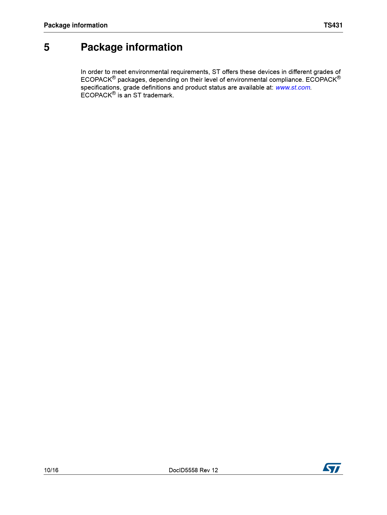 Pages / Page16 / 10 — Package information. TS431. 5 Package. information