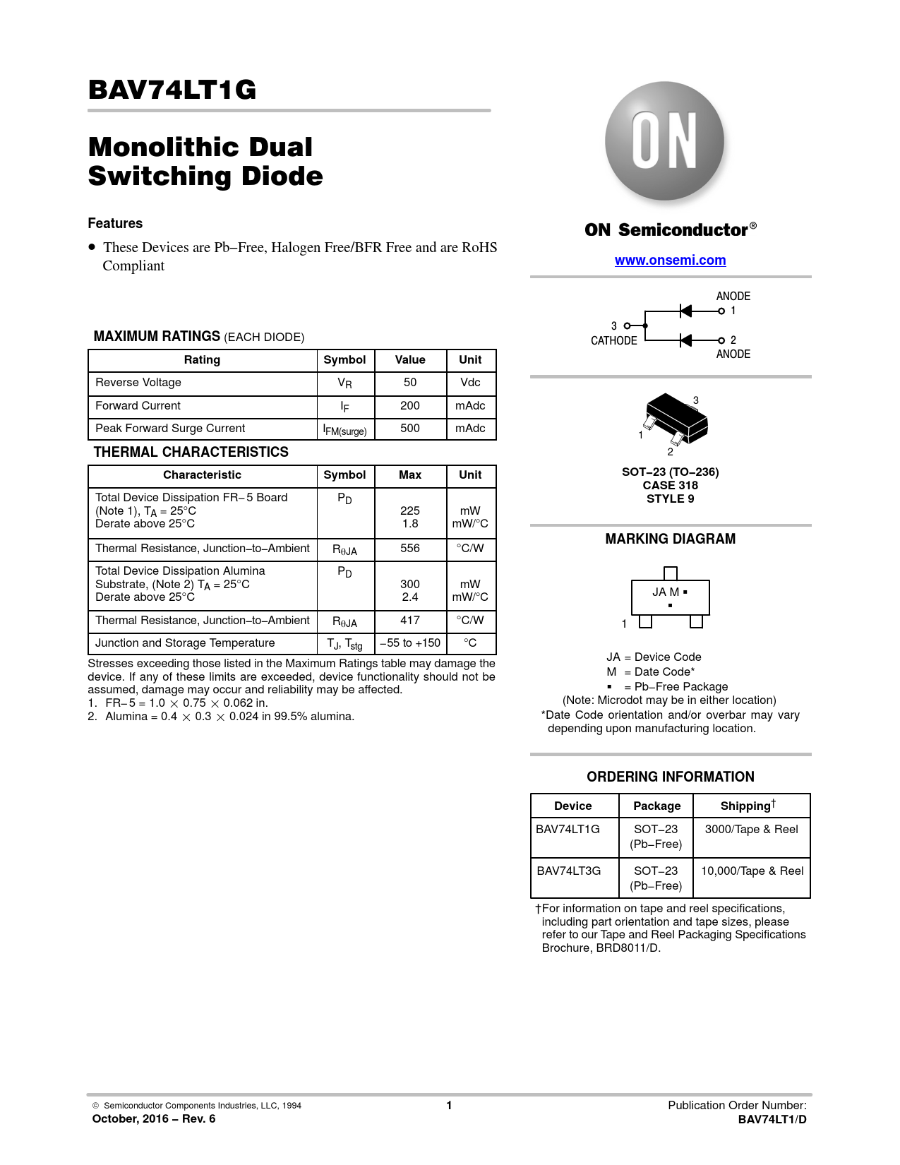 link to page 1 link to page 1 BAV74LT1G Monolithic Dual Switching Diode