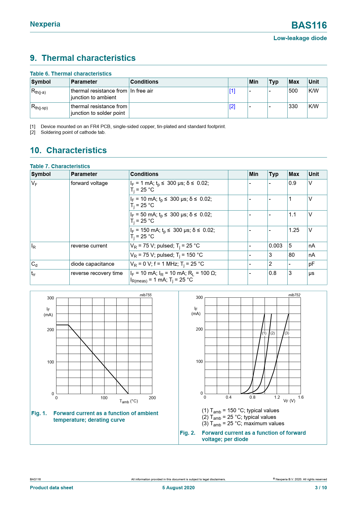 | Pages / Page | 10 / 3 — Nexperia. BAS116. Low-leakage diode. 9. Thermal characteristics Table 6. … |