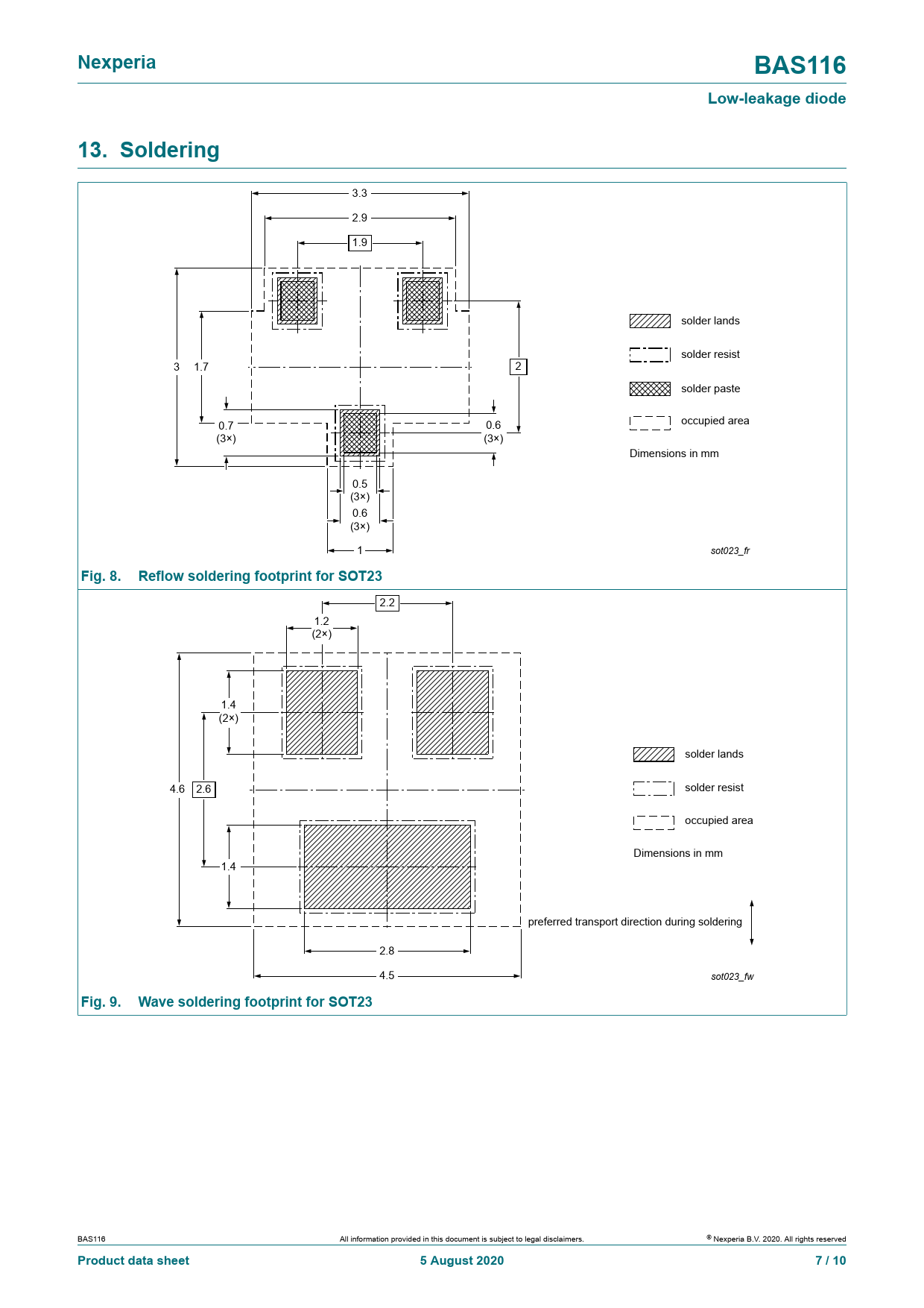 Nexperia. BAS116. Low-leakage diode. 13. Soldering. Fig. 8. Reflow soldering footprint for SOT23