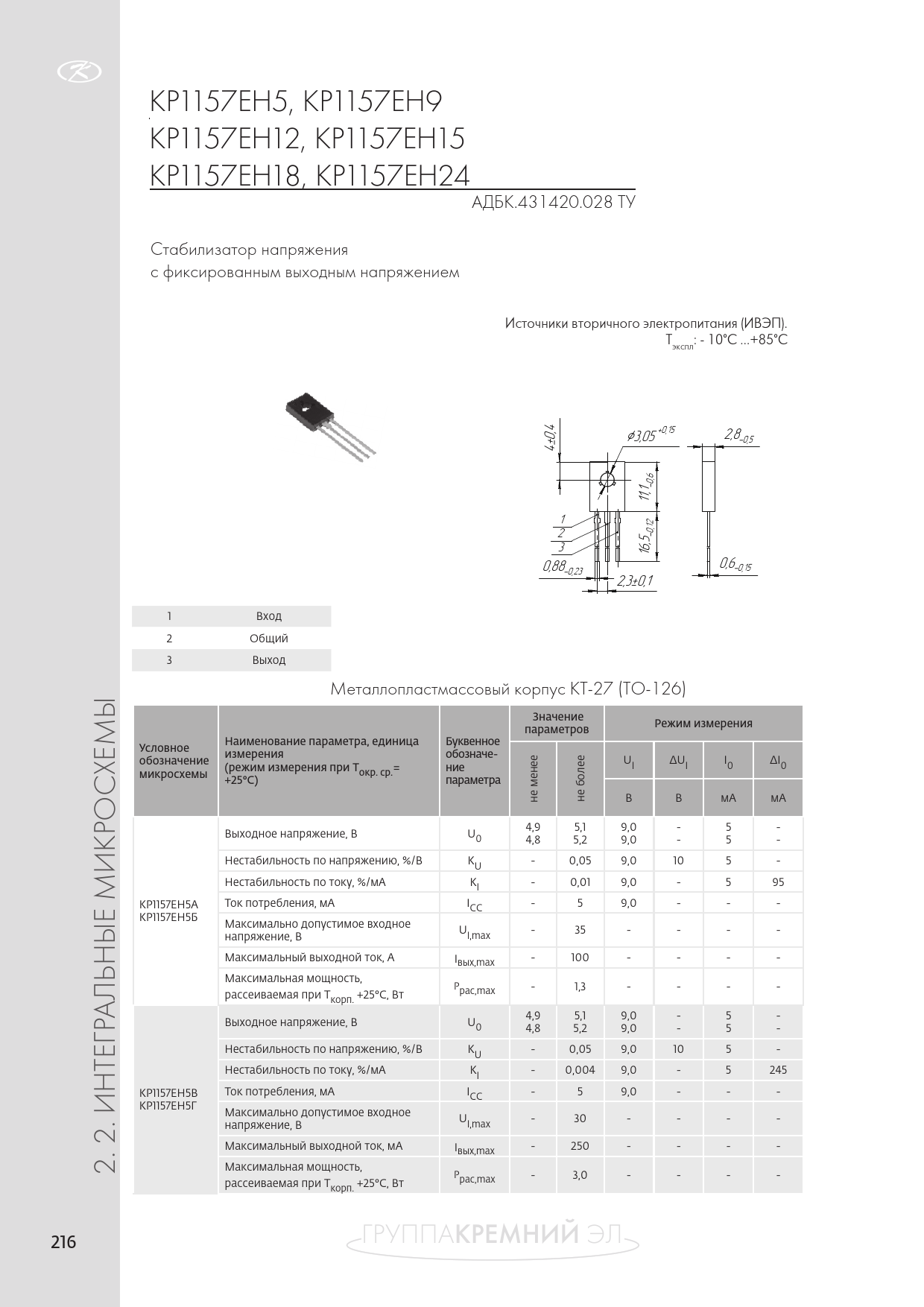 Datasheet КР1157ЕН5, КР1157ЕН9 КР1157ЕН12, КР1157ЕН15 КР1157ЕН18, КР1157ЕН24 (Кремний)