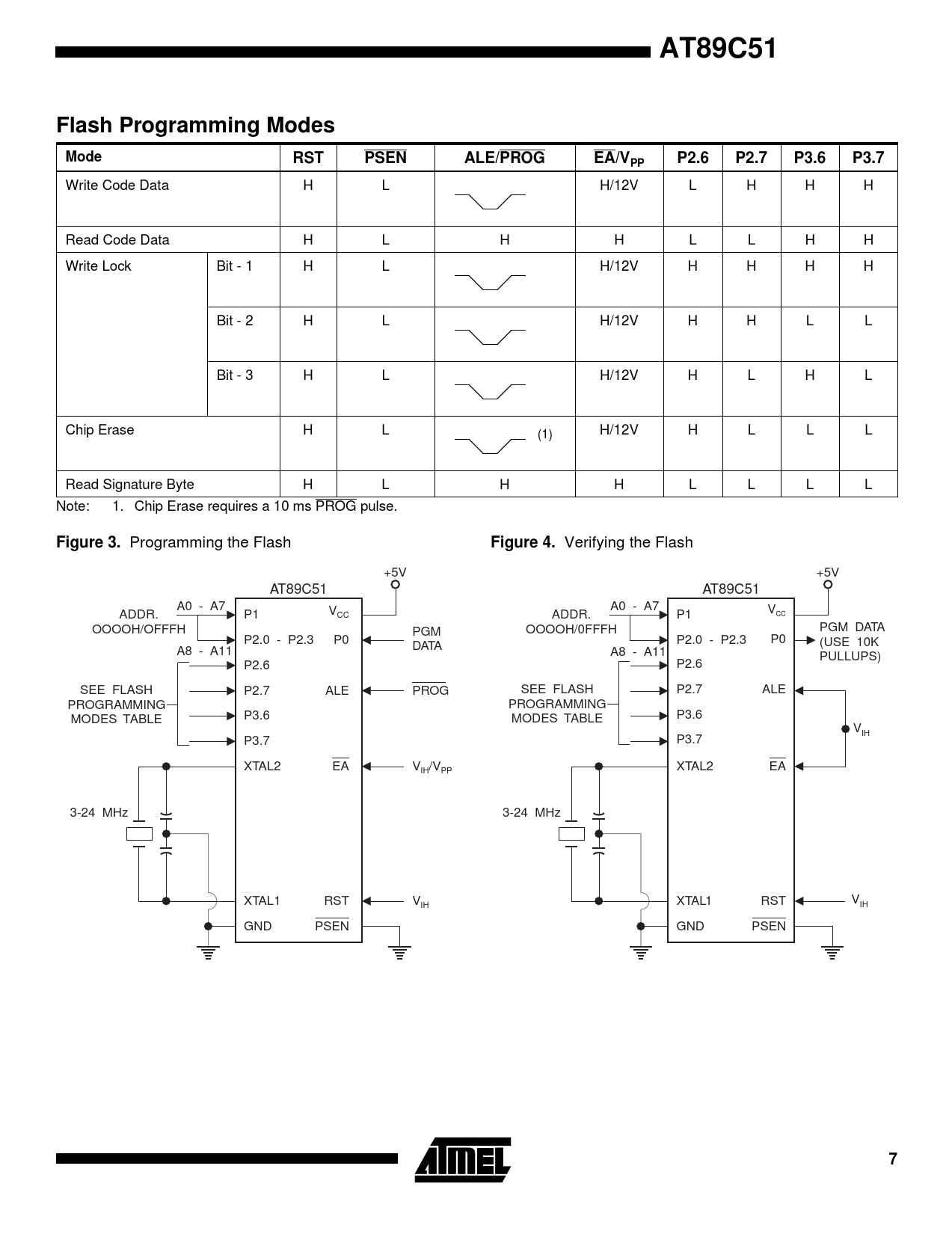 AT89C51 Flash Programming Modes Mode RST PSEN ALE/PROG EA/V P2.6 P2.7 P3.6 P3.7 Figure 3 Figure 4