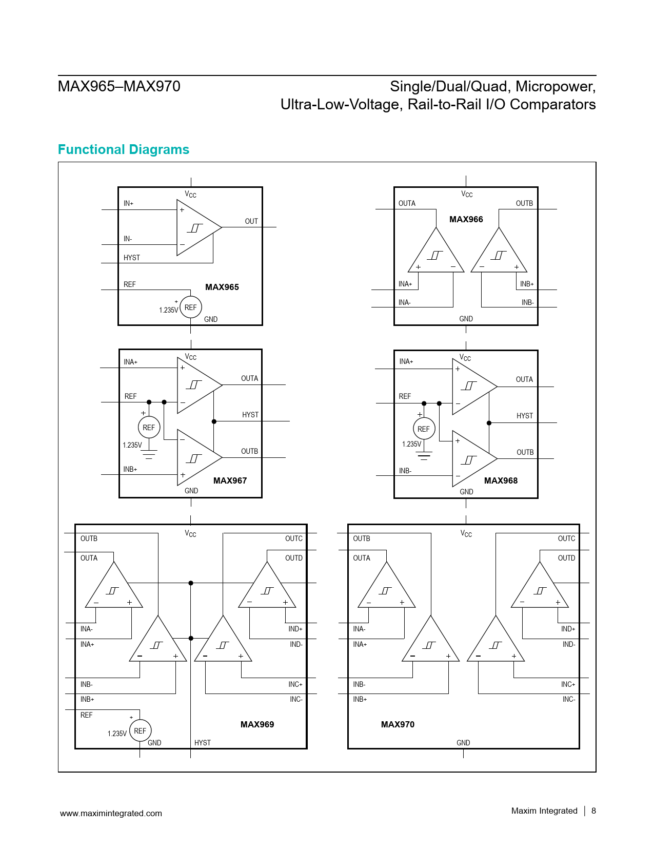 | Pages / Page | 15 / 8 — Functional Diagrams. MAX966. MAX965. MAX967. MAX968. MAX969. MAX970 |