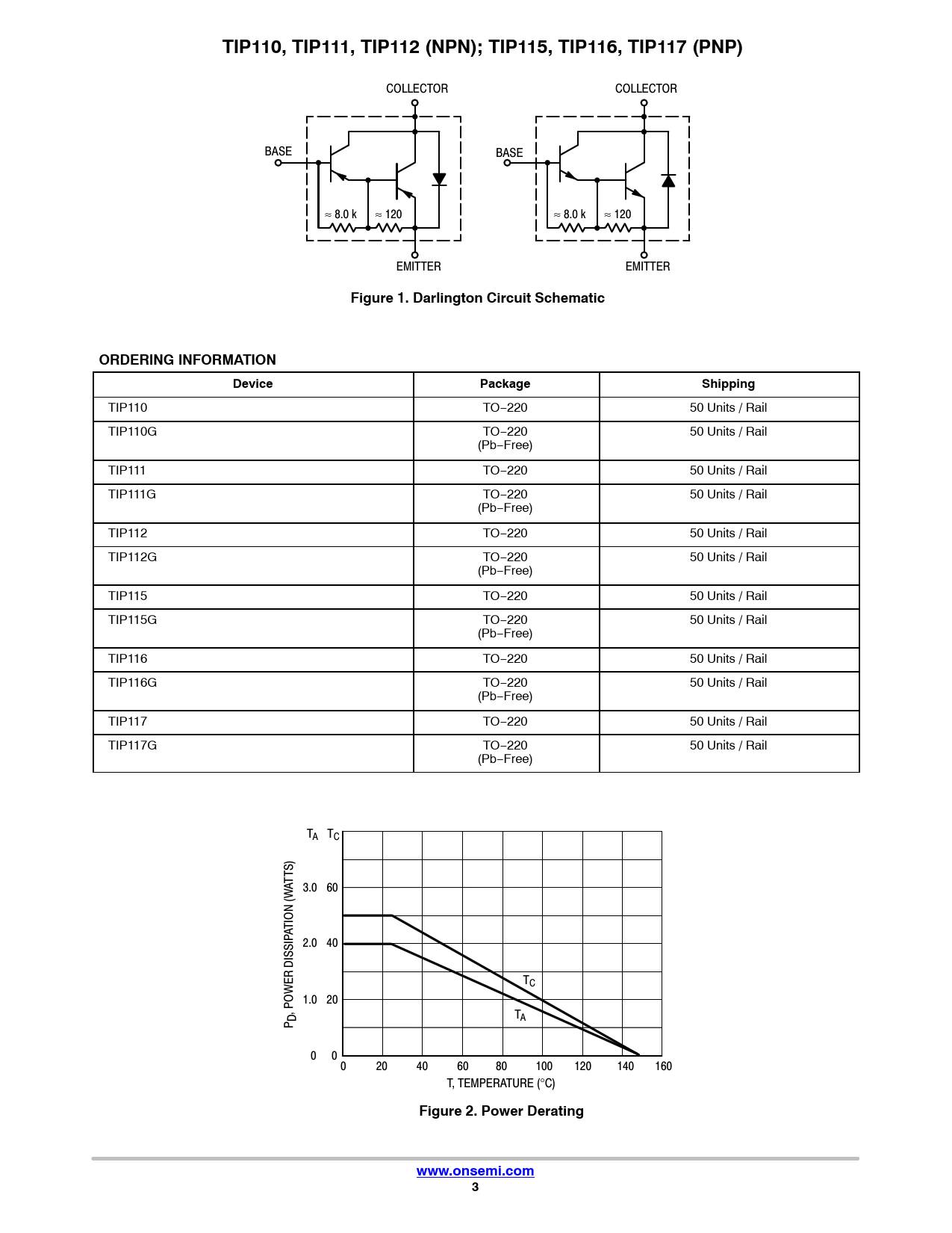 Datasheet TIP110, TIP111, TIP112 (NPN); TIP115, TIP116, TIP117 (PNP) (ON Semiconductor) - 3