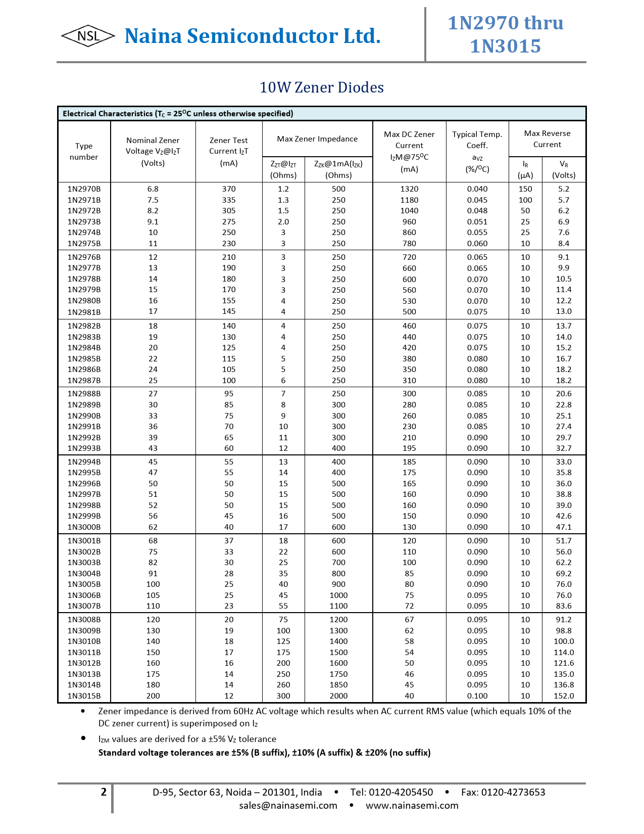 Datasheet 1N2970B - 1N3015B (Naina Semiconductor) - 2