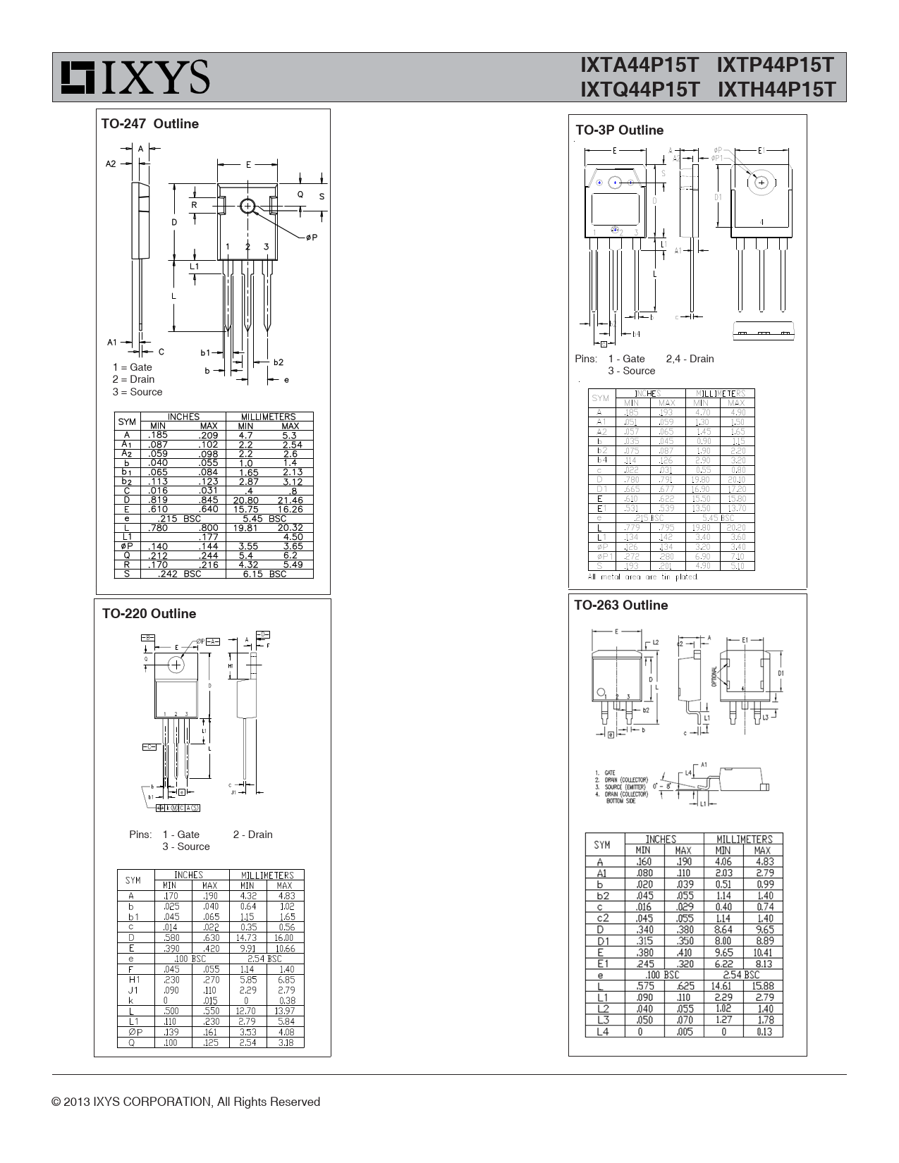 IXTA44P15T IXTP44P15T IXTQ44P15T IXTH44P15T. TO-247 Outline. TO-3P Outline. TO-263 Outline. TO-220 Outline