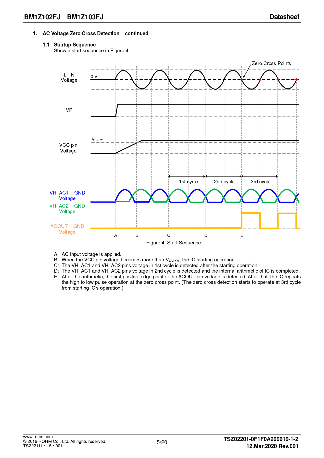 BM1Z102FJ BM1Z103FJ. 1. AC Voltage Zero Cross Detection – continued. 1.1 Startup Sequence. TSZ02201-0F1F0A200610-1-2