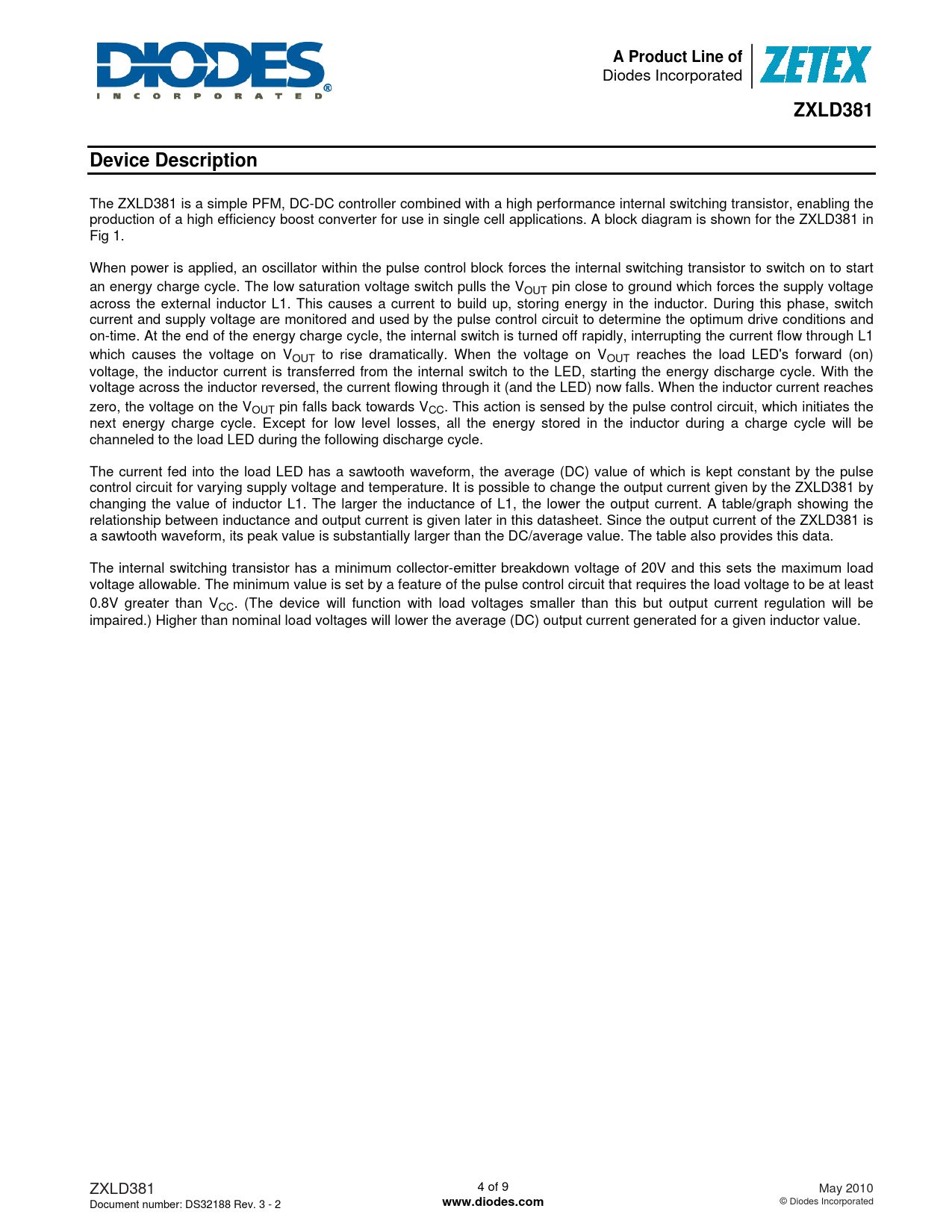 | Pages / Page | 9 / 4 — A Product Line of. ZXLD381. Device Description. www.diodes.com |