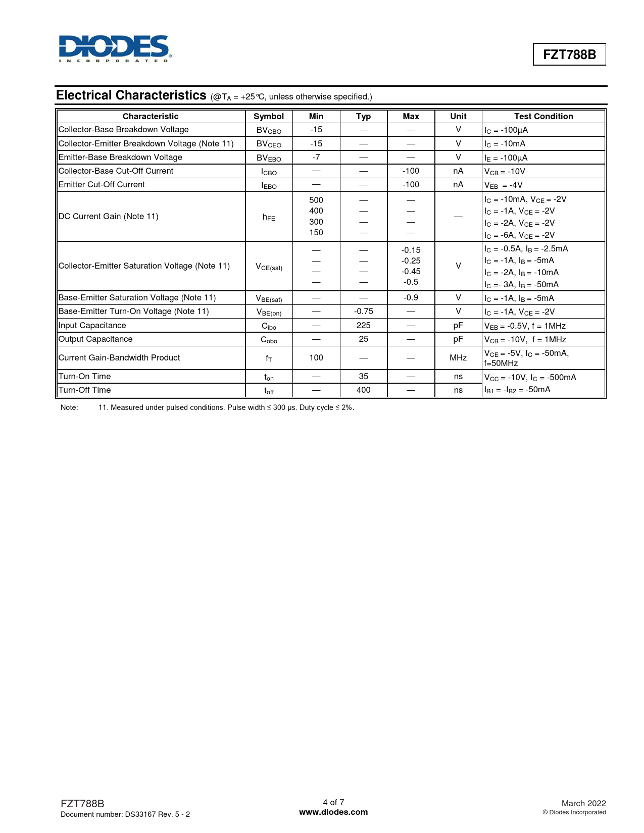 FZT788B. Electrical Characteristics. Characteristic. Symbol. Min. Typ. Max. Unit. Test Condition. www.diodes.com