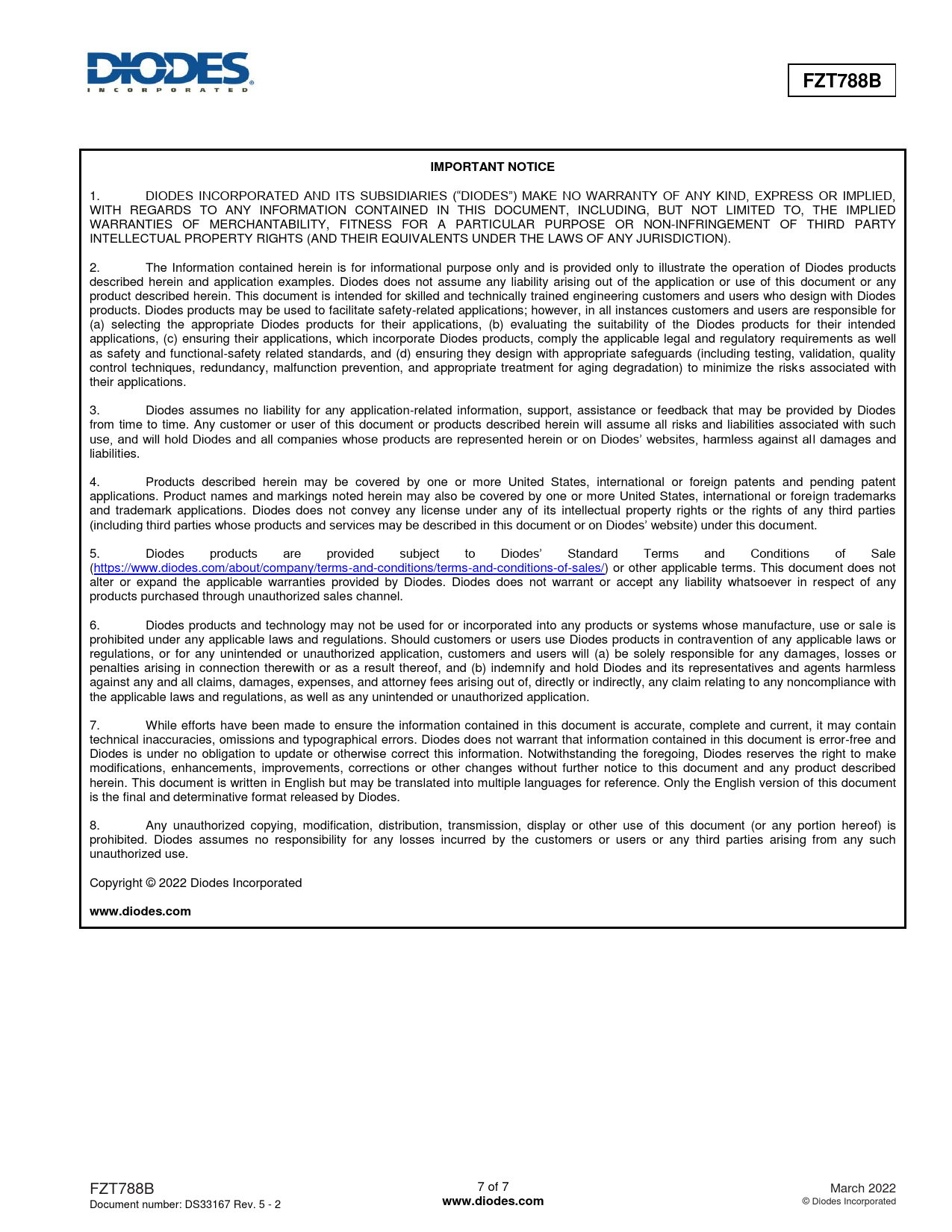 | Pages / Page | 7 / 7 — FZT788B. IMPORTANT NOTICE. www.diodes.com |
