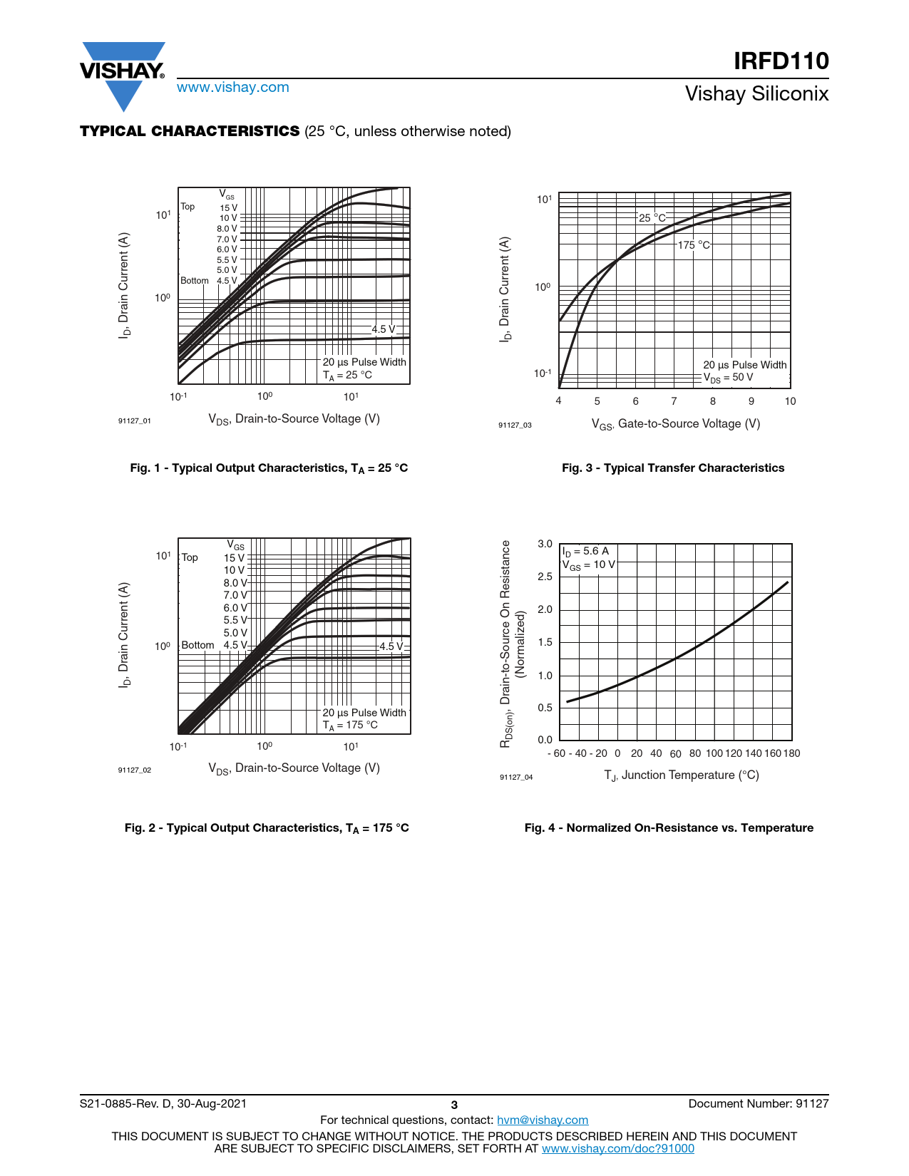 IRFD110. TYPICAL CHARACTERISTICS. Fig. 1 - Typical Output Characteristics, TA = 25 °C