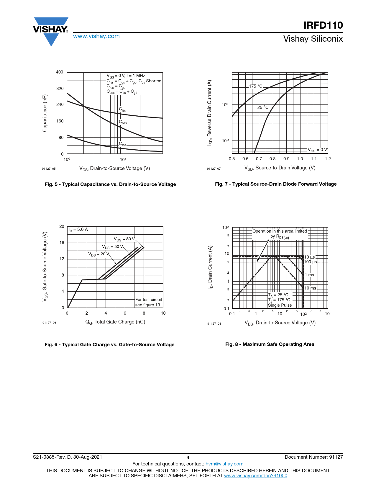 IRFD110. Fig. 5 - Typical Capacitance vs. Drain-to-Source Voltage. Fig. 7 - Typical Source-Drain Diode Forward Voltage