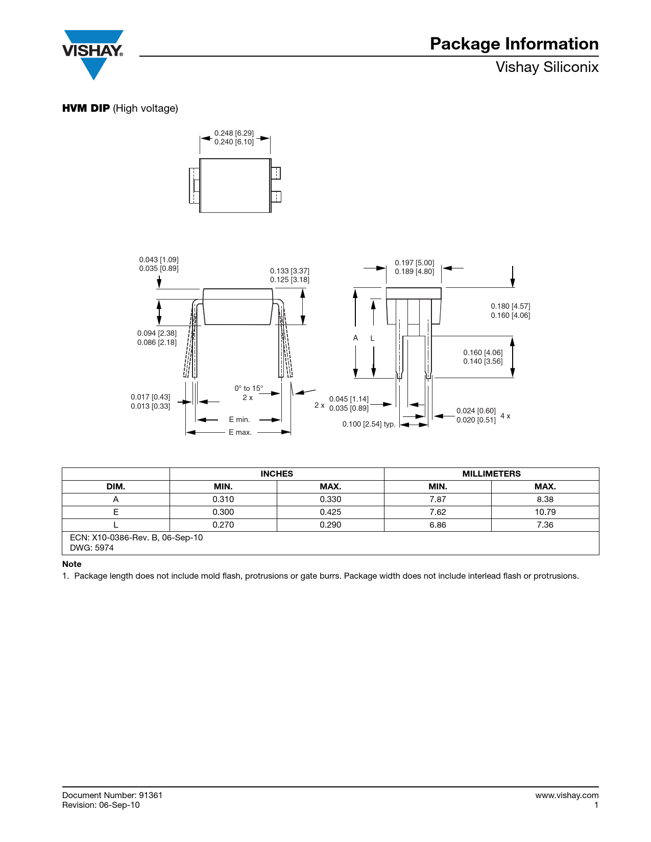 1. Package length does not include mold flash, protrusions or gate burrs. Package width does not include interlead flash or protrusions. Document Number: 91361 www.vishay.com Revision: 06-Sep-10 1