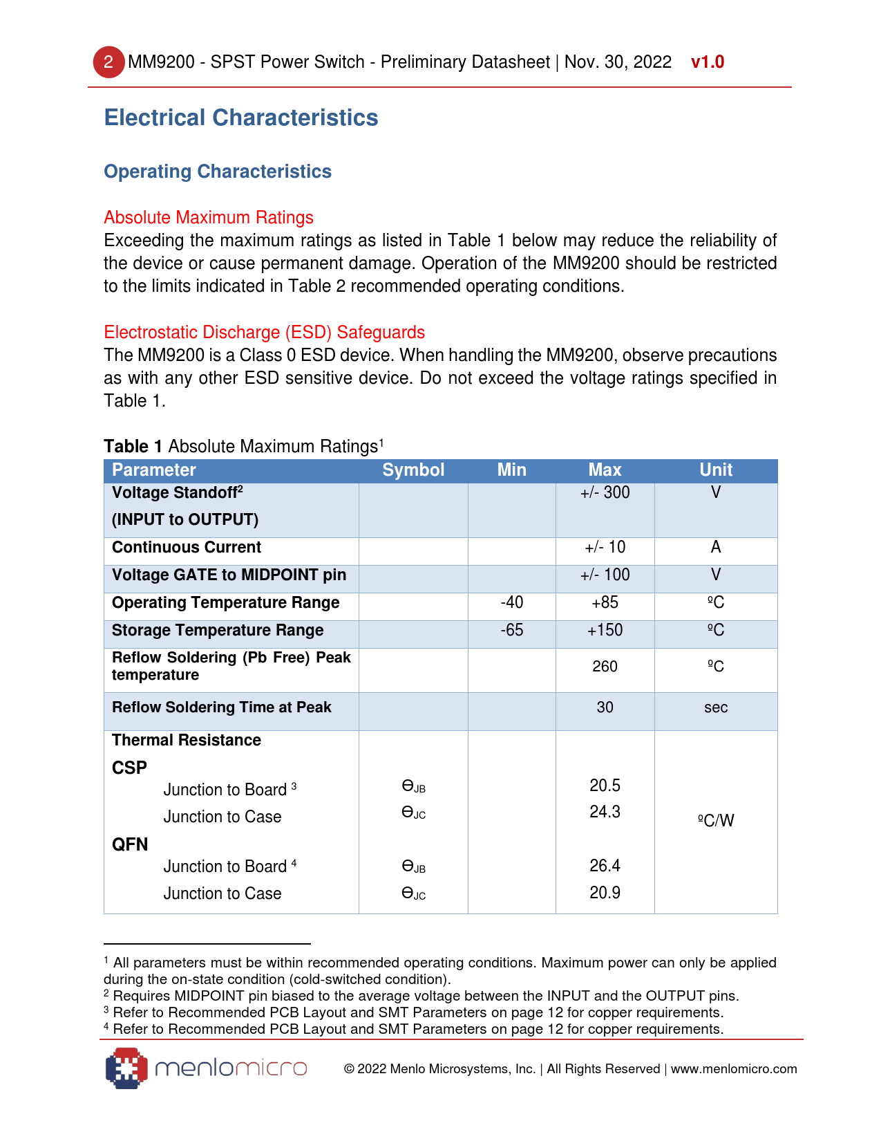 link to page 2 link to page 3 link to page 2 link to page 12 link to page 12 link to page 12 link to page 12 2 MM9200 - SPST Power Switch - Preliminary Datasheet | Nov. 30, 2022