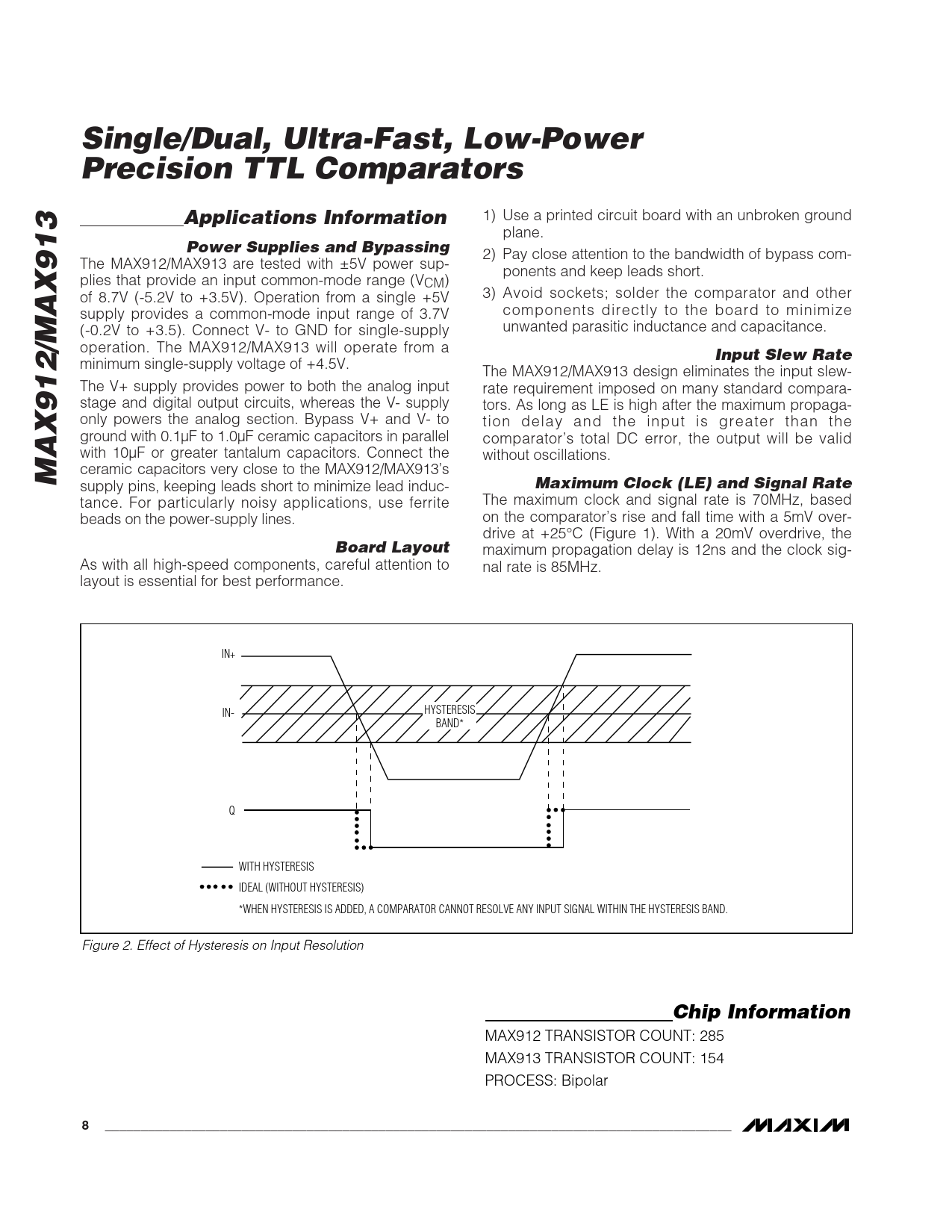 MAX912 TRANSISTOR COUNT: 285 MAX913 TRANSISTOR COUNT: 154 PROCESS: Bipolar