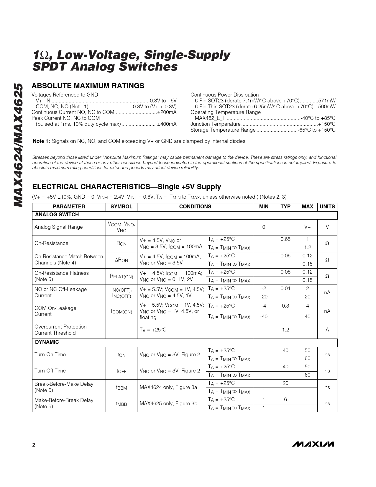 Datasheet MAX4624, MAX4625 (Maxim) - 2