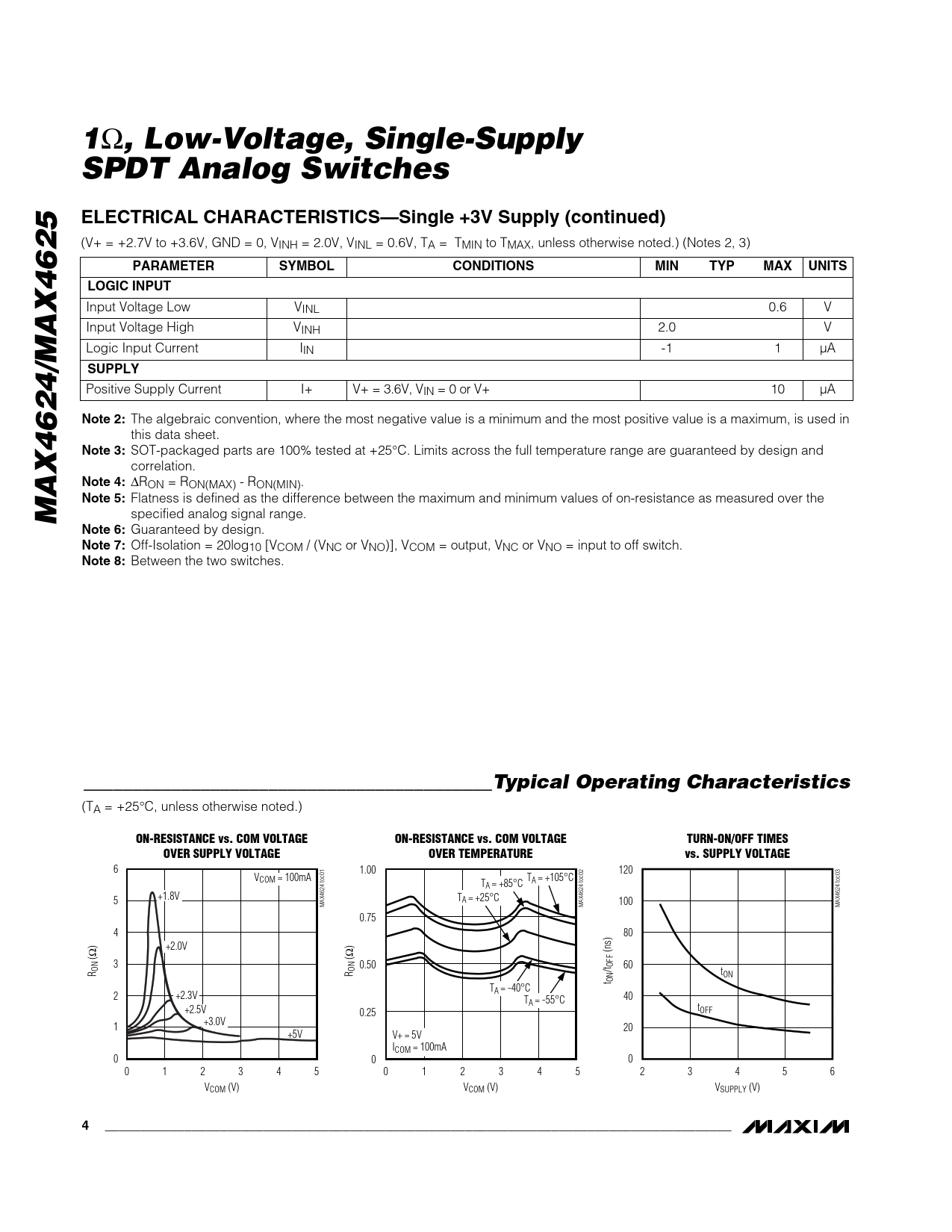 , Low-Voltage, Single-Supply SPDT Analog Switches ELECTRICAL CHARACTERISTICS—Single +3V Supply (continued) PARAMETER SYMBOL